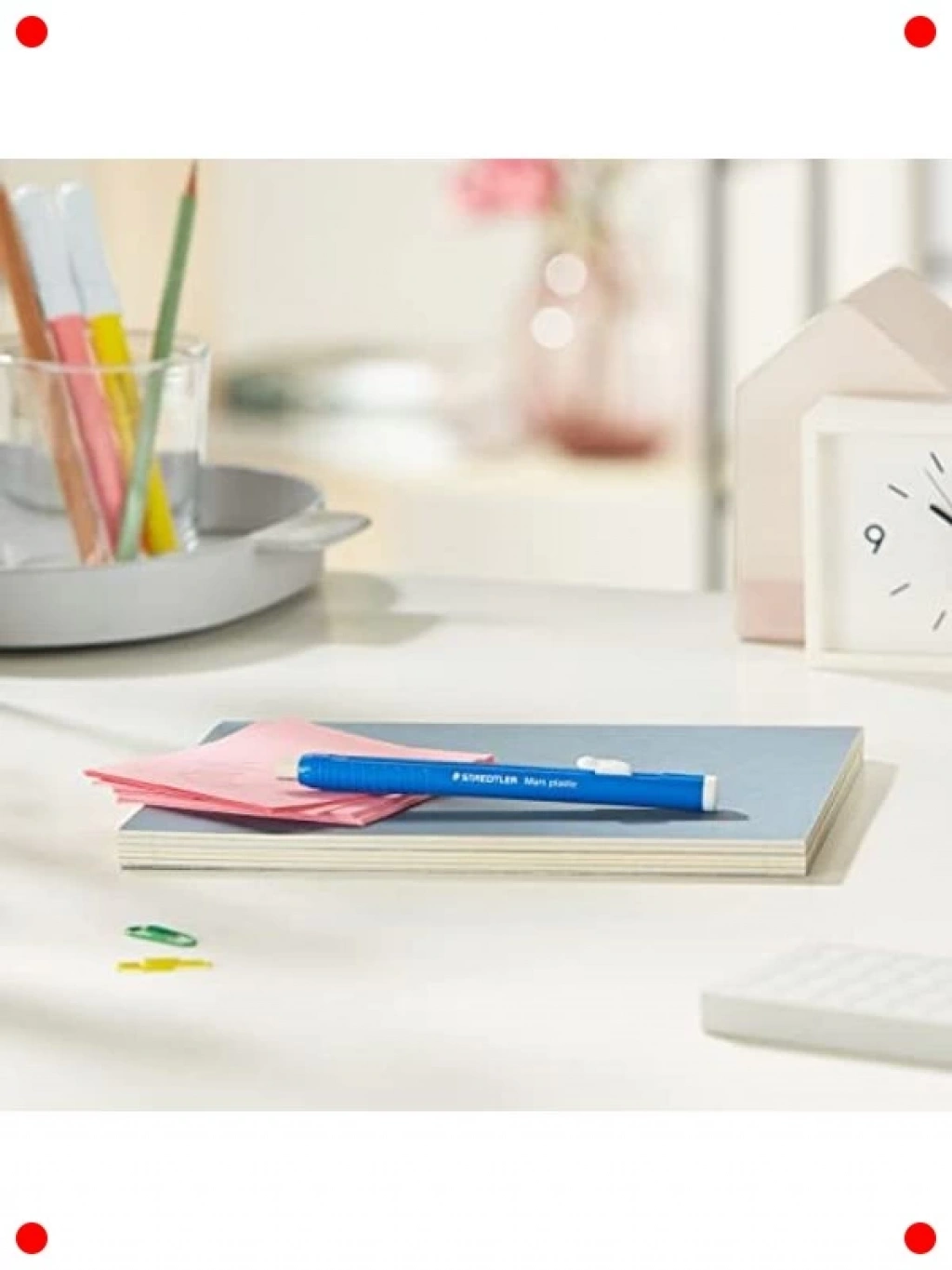 Hassas ve temiz silme deneyimi için tasarlanan bu sürgülü silgi, pratik kullanımıyla öne çıkar. Özel sürgülü mekanizması, silginin her zaman temiz kalmasını ve kolayca kullanılmasını sağlar. Silme işlemini yaparken minimum kalıntı bırakır ve kağıdınıza zarar vermez. Kaliteli malzemesi sayesinde uzun ömürlü bir kullanım sunar. Ergonomik yapısı, elinizde rahatça tutulur ve kontrol edilebilir bir silme imkanı verir. Okulda, ofiste veya sanatsal çalışmalarda kusursuz düzeltmeler yapmanızı sağlayan bu silgi, kalem izlerini etkili bir şekilde yok ederken çalışma alanınızın düzenli kalmasına yardımcı olur. Kompakt boyutu sayesinde kalem kutunuzda kolayca taşınabilir.