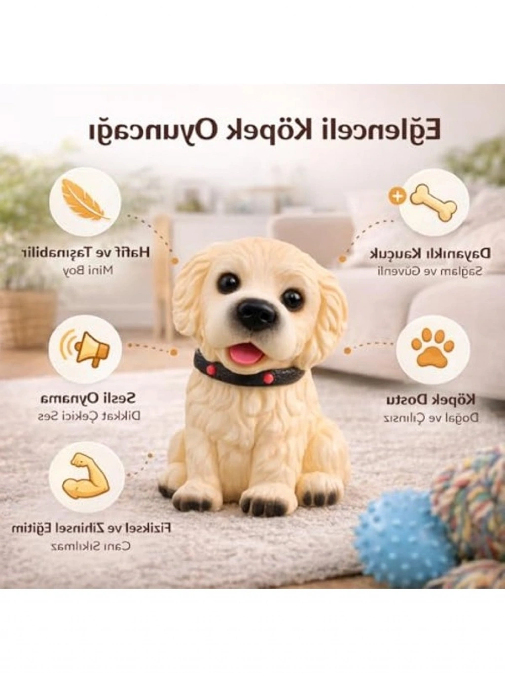 Havlayan köpek figürü sesli oyuncak, hareket ve dokunma ile aktive olan ses mekanizması sayesinde dikkat çekici bir oyun deneyimi sunar. Evcil hayvanınızı eğlendirirken, avcılık içgüdüsünü destekler ve fiziksel aktivite sağlar. Dayanıklı yapısı ile uzun ömürlü bir kullanım imkanı sunar.