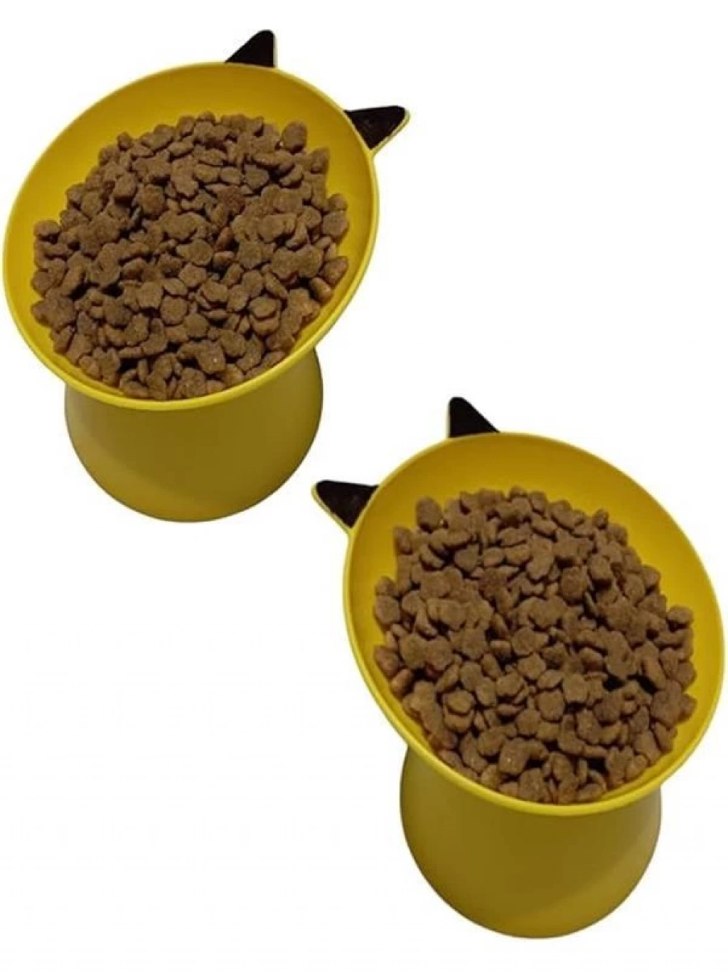 Bu ürün hakkında Kedi figürlü kulakları ve eğimli yapısıyla hem şık hem de işlevsel bir tasarıma sahip Bu tasarım kedilerin daha rahat ve doğal bir pozisyonda yemek yemesini sağlar Genellikle dayanıklı ve kolay temizlenebilir plastikten üretilmiştir Boyutlar Farklı kedi ırkları ve yaşları için çeşitli boyutlarda bulunabilir Sindirim sorunlarını azaltır Eğimli tasarım kedilerin yemek yerken boynunu zorlamasını engeller ve böylece sindirim sorunlarının azalmasına yardımcı olur Daha az dökülme Kabın kenarları yükseltildiği için mama ve Su daha az dökülür Kolay temizlenir Tek parça halinde olduğu için yıkaması kolaydır Şık görünüm Kedi figürlü tasarımıyla ev dekorasyonuna uyum sağlar Paket İçeriği 2 Adet Sarı Mama Su Kabı