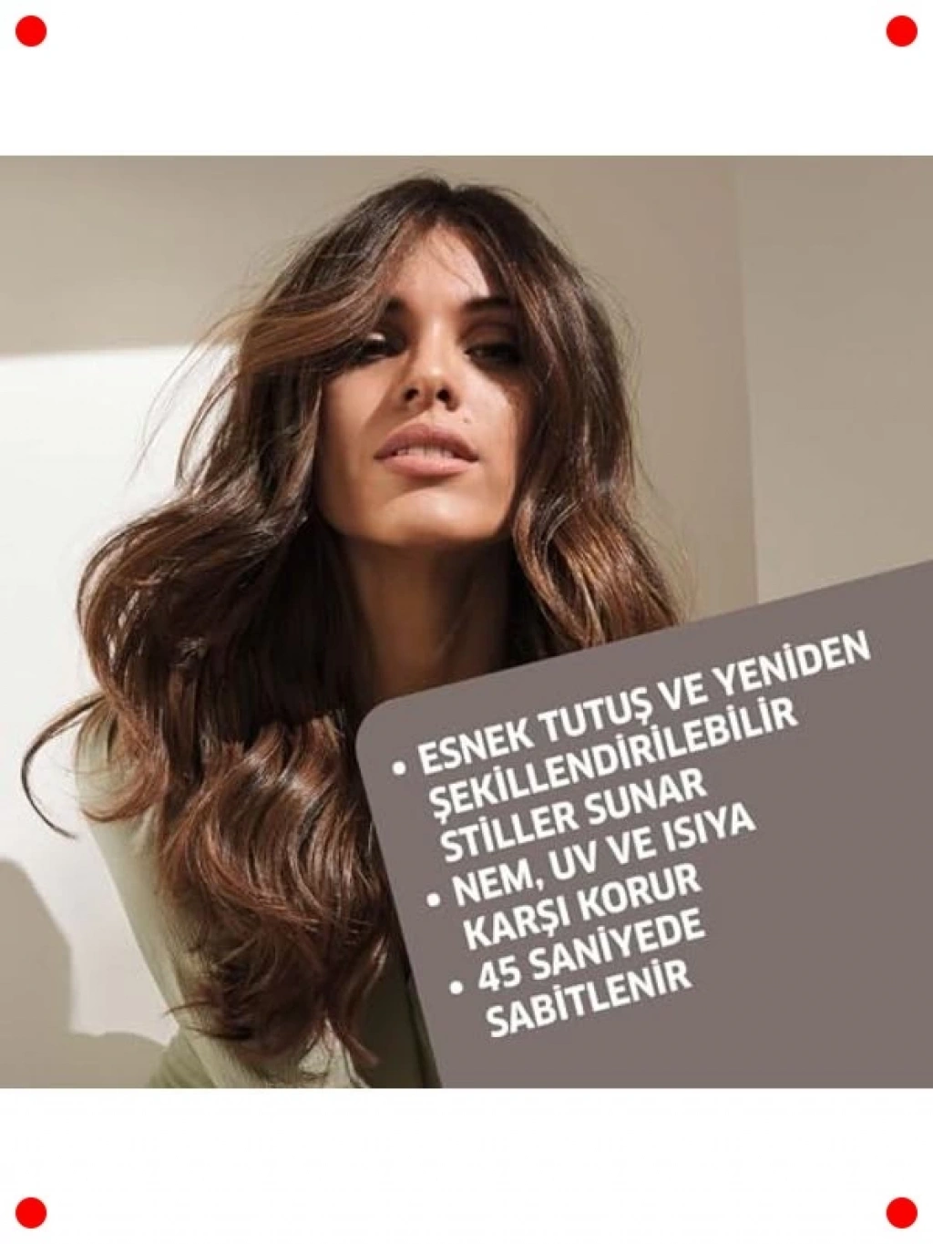 Saç stilinizi anında sabitlemek ve gün boyu kalıcılığını sağlamak için tasarlanmış bu dinamik saç spreyi ile tanışın. Sadece 45 saniyede kuruyarak saçınıza güçlü ancak esnek bir tutuş sağlar. Saçlarınızı sertleştirmeden, doğal hareketini korur ve kolayca taranabilir bir yapı sunar. Neme karşı koruyucu özelliği sayesinde saç stilinizin bozulmasını engeller. 500 ml'lik büyük boyutuyla uzun süreli ve profesyonel kullanıma uygundur. Her an mükemmel görünen saçlar için vazgeçilmez bir yardımcı.