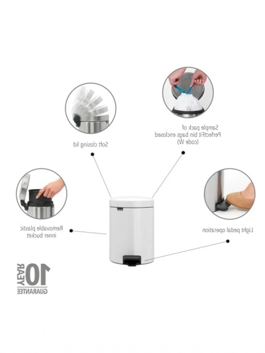 5 litrelik bu çöp kovası, yumuşak kapanan koku geçirmez kapak ile tasarlanmıştır. Kolay kullanım sağlayan pedal mekanizması ile el yorgunluğunu azaltır. Çıkarılabilir iç parçayla kolay temizlik imkanı sunar. Kaymaya karşı dayanıklı zemin ile sağlam duruş sağlar. Uzun ömürlü kullanım için 10 yıl garanti ile desteklenmiştir.