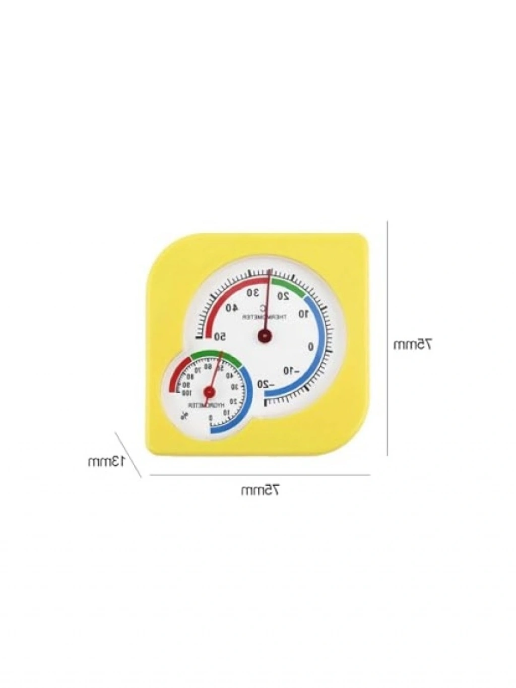 Bu kullanışlı mini analog termometre, iç mekan iklimlendirmesi için tasarlanmıştır. Hem sıcaklık hem de nem ölçümü yapabilen bu ürün, evde, ofiste veya diğer kapalı alanlarda hava koşullarını takip etmenizi sağlar. Basit ve şık tasarımı ile her ortama uyum sağlar.