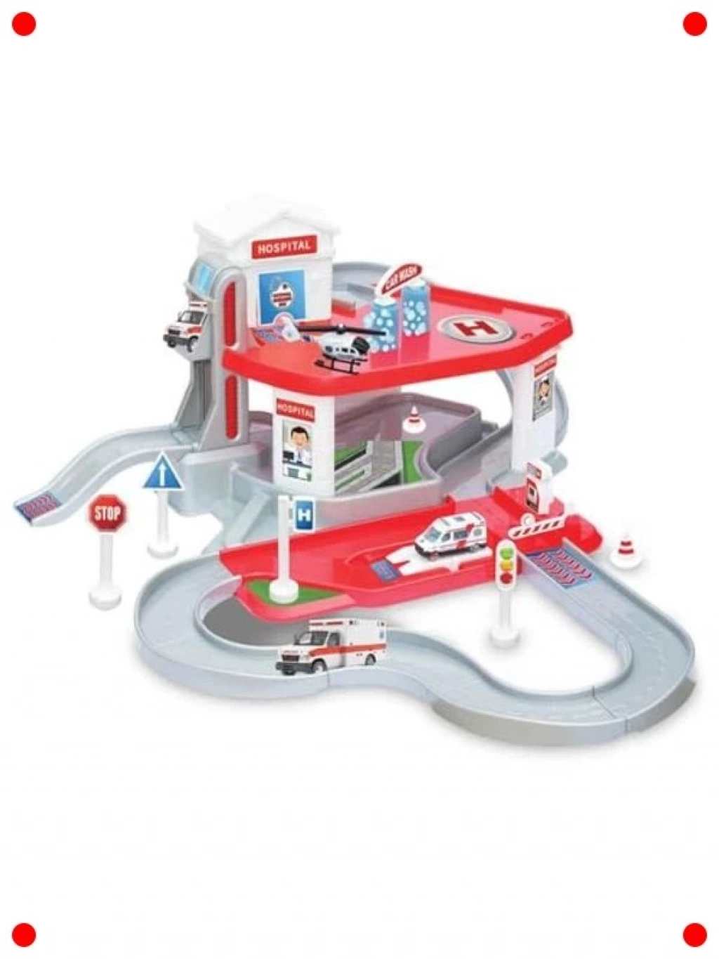 Çocuklarınızın hayal gücünü harekete geçirecek bu iki katlı hastane ve garaj oyun seti ile sınırsız maceralara atılın! Minik kahramanlar, araçlarını garaja park edebilir, acil durumlara müdahale edebilir ve hastaları iyileştirebilirler. Çok katlı yapısı ve geniş pist alanı, farklı senaryoları canlandırma imkanı sunar. Rol yapma oyunları sayesinde empati, sorumluluk ve problem çözme becerileri gelişir. Dayanıklı ve çocukların güvenliği düşünülerek tasarlanmış bu set, saatlerce sürecek yaratıcı oyunlara ev sahipliği yapar. Çocuklarınızın kendi hikayelerini yaratmasına izin verin ve kurtarma operasyonlarına tanık olun.