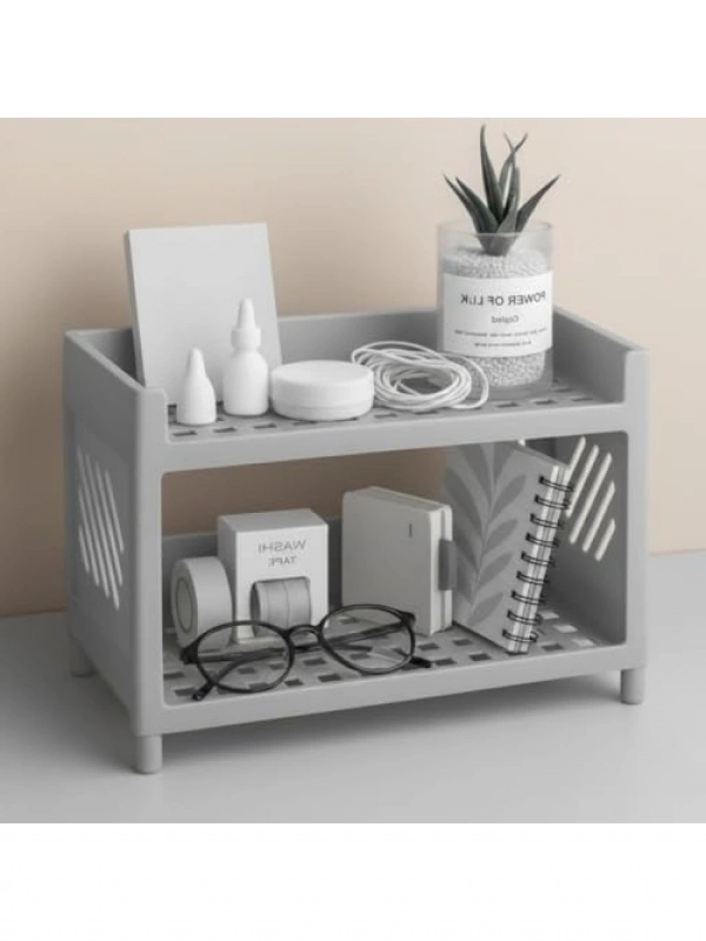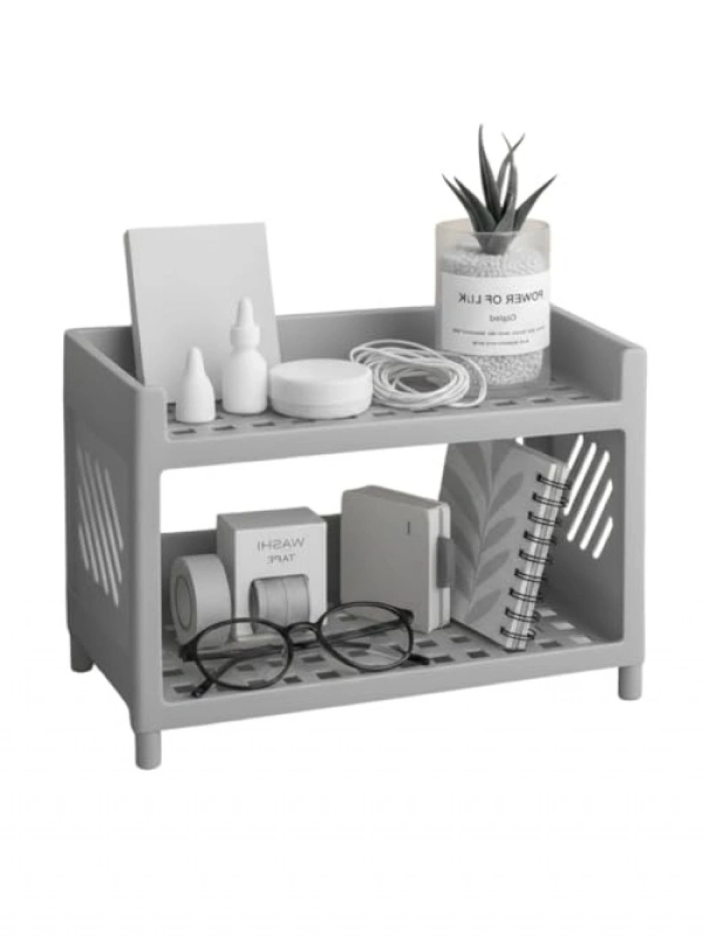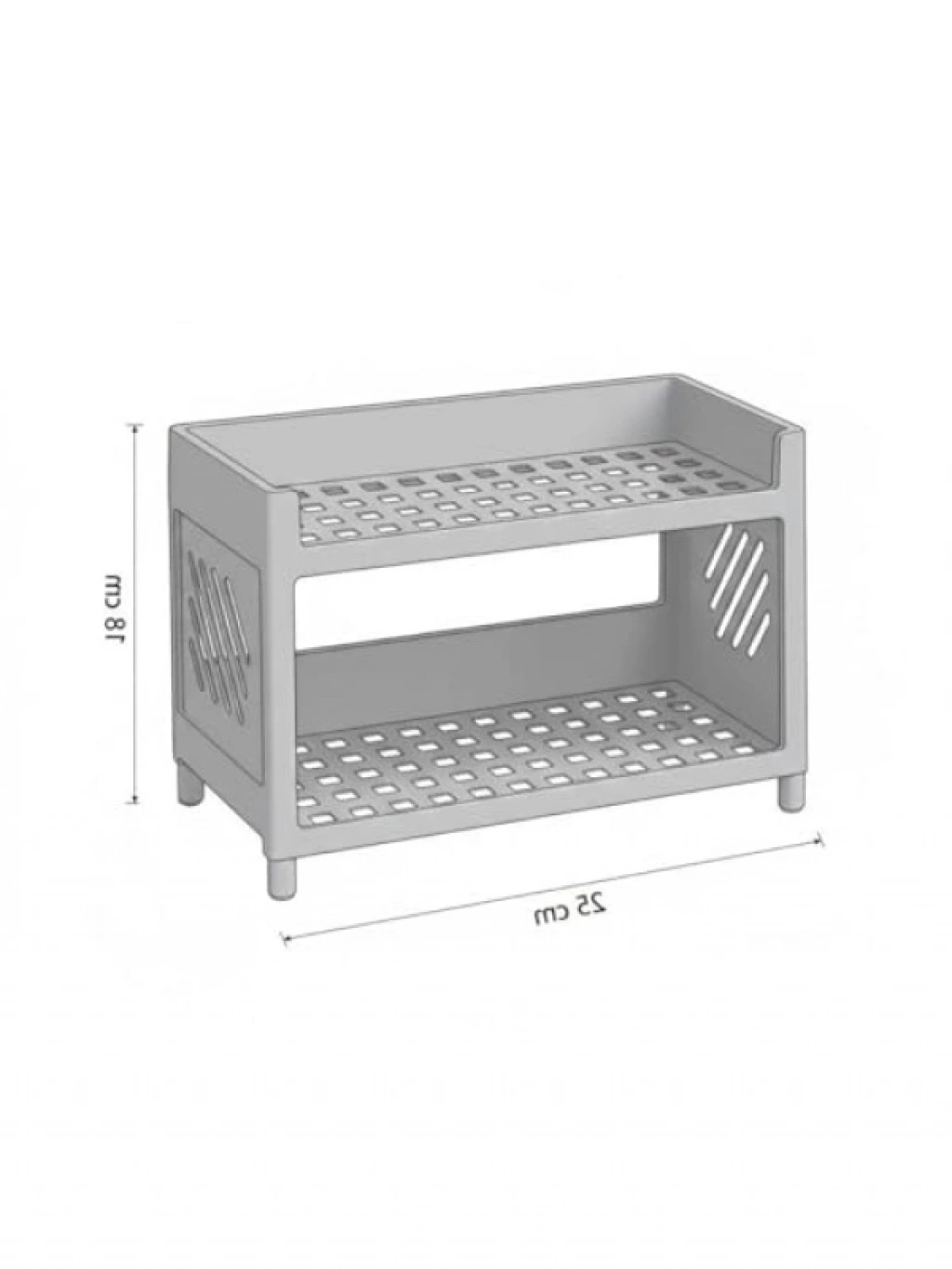Gri renkteki iki katlı organizer raf, banyo, mutfak, masaüstü ve ofis gibi birçok alanda kullanıma uygun olan fonksiyonel bir depolama çözümüdür. Dayanıklı plastik yapısı sayesinde uzun ömürlüdür ve çatlama, eğilme gibi sorunlara karşı dayanıklıdır. Delikli raf yüzeyi, hava dolaşımını artırarak nem birikimini önler ve hijyen sağlar. Kompakt ölçüleri ile 25 cm genişlik ve 18 cm yükseklik sunarak, küçük alanlarda bile maksimum depolama imkanı tanır. Kaymaz ayakları sayesinde sabit durarak güvenli bir kullanım sunar.