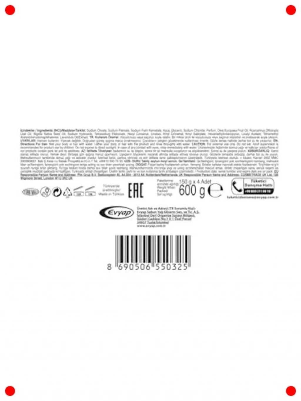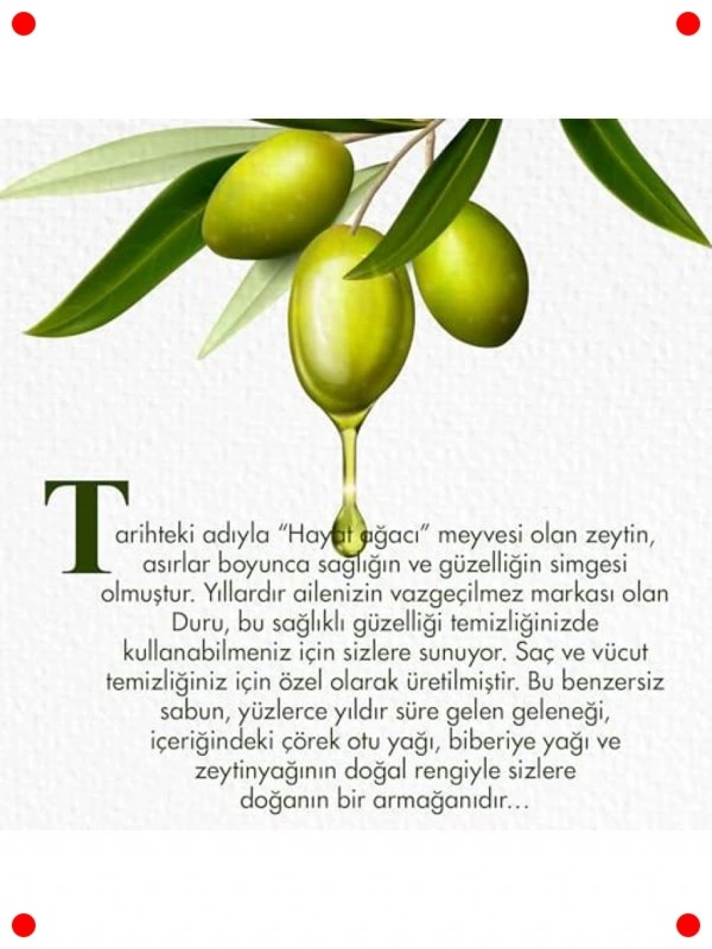 Doğanın saflığını ve zeytinyağının besleyici gücünü banyonuza taşıyan bu doğal sabun, geleneksel yöntemlerle "ilk hasat" zeytinyağından üretilmiştir. Cildinizi nazikçe temizlerken, derinlemesine nemlendirme sağlar ve doğal bariyerini korumasına yardımcı olur. İçeriğindeki zeytinyağı sayesinde cildinizi kurutmadan yumuşacık bir his bırakır, cildin esnekliğini artırır ve sağlıklı bir parlaklık kazandırır. Yüz ve vücut temizliği için uygun olan bu sabun, hassas ciltler dahil tüm cilt tipleri için güvenle kullanılabilir. 4 adet 150 gramlık ekonomik paketiyle uzun süreli kullanım sunar, cildinize doğallık ve tazelik armağan eder.