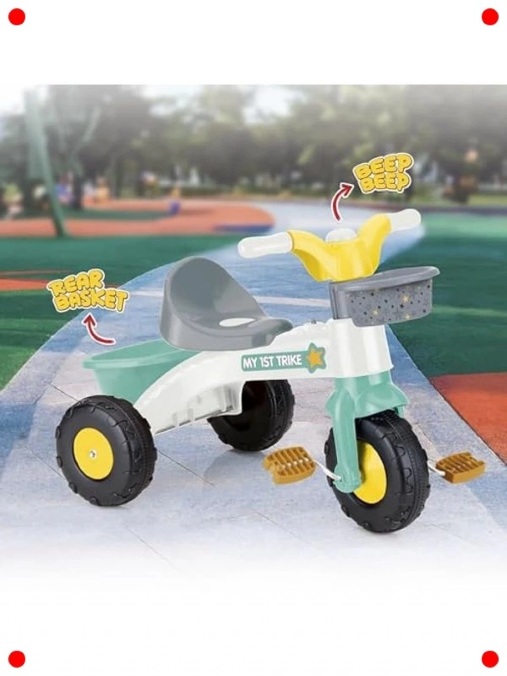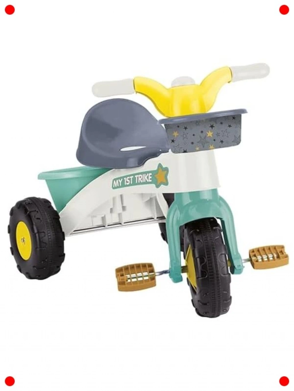 Miniklerin ilk bisiklet deneyimi için ideal olan bu üç tekerlekli bisiklet, güvenli ve eğlenceli bir sürüş sunar. Sağlam yapısı sayesinde çocukların dengelerini kolayca bulmalarına yardımcı olurken, geniş tekerlekleri stabillik sağlar. Canlı renkleri ve çocuk dostu tasarımı, küçüklerin dikkatini çeker ve dışarıda oynamaya teşvik eder. Ergonomik oturma alanı ve kolay tutulan gidonu, konforlu bir kullanım vadeder. Motor becerilerini ve koordinasyon yeteneklerini geliştirirken, çocuklara özgürce hareket etme ve keşfetme fırsatı sunar. Uzun süreli kullanım için dayanıklı malzemelerden üretilmiştir.