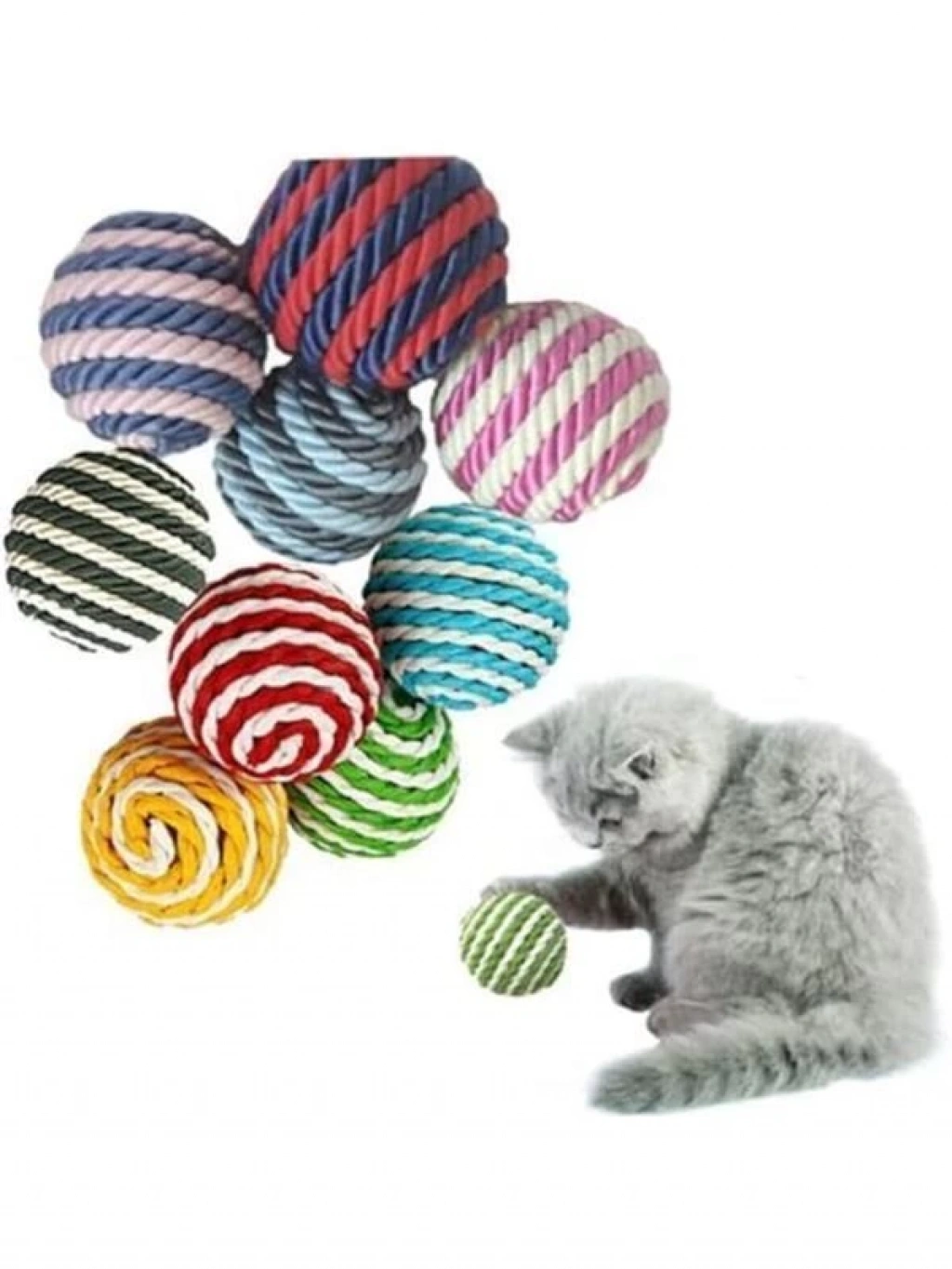 İp Sarma Renkli Kedi Oyun Topu 4 Cm Kedi Oyuncağı (1 Adet)
