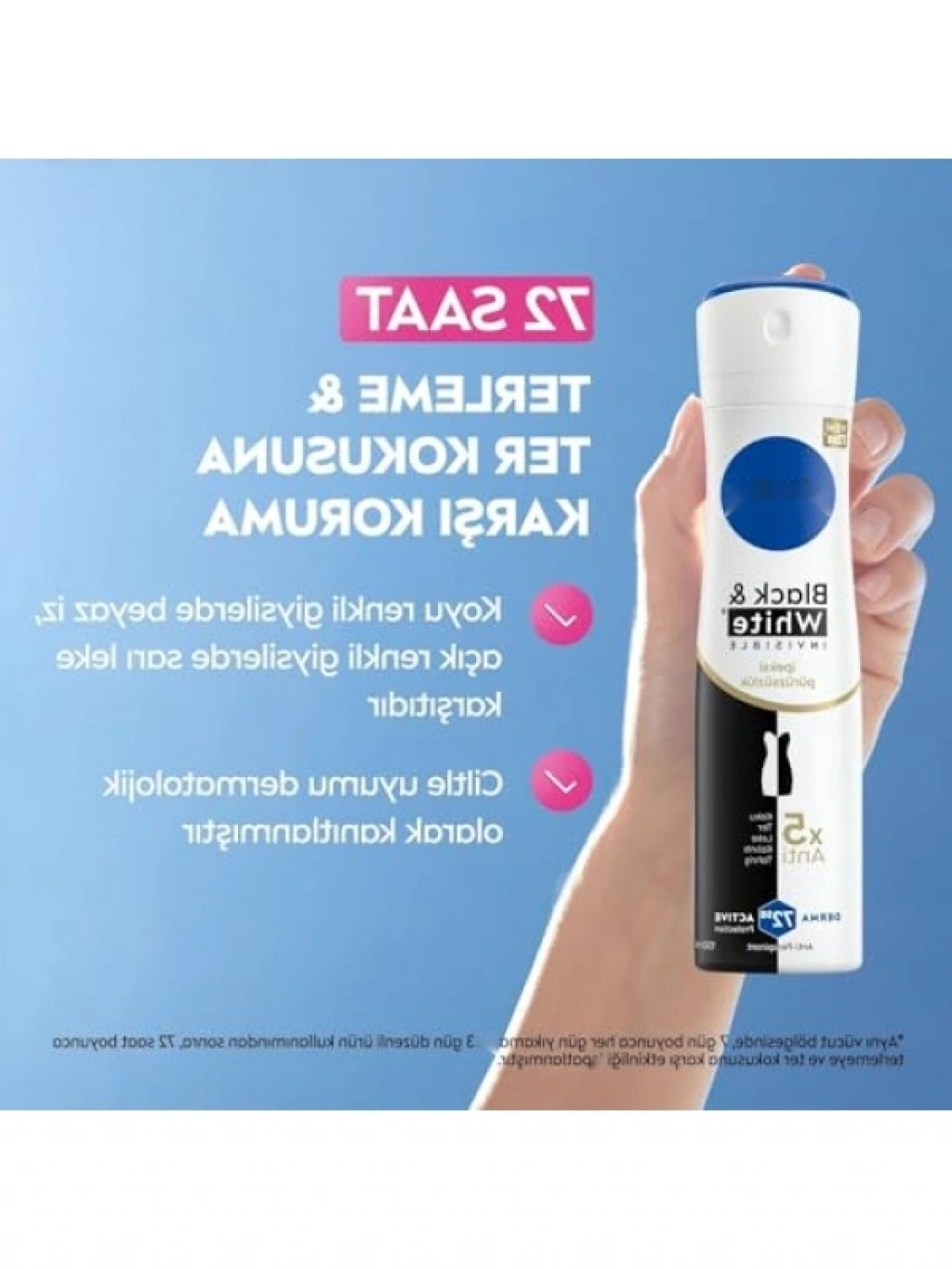 Bu deodorant, terlemeye ve kötü kokuya karşı 72 saate kadar koruma sağlar. İpeksi dokusu ile cilde yumuşaklık kazandırır, hem açık hem de koyu renkli giysilerde iz bırakmaz. Derma aktif koruma teknolojisi ile ciltle uyumu dermatolojik olarak test edilmiştir. Gün boyu taze ve ferah hissetmenize yardımcı olur.