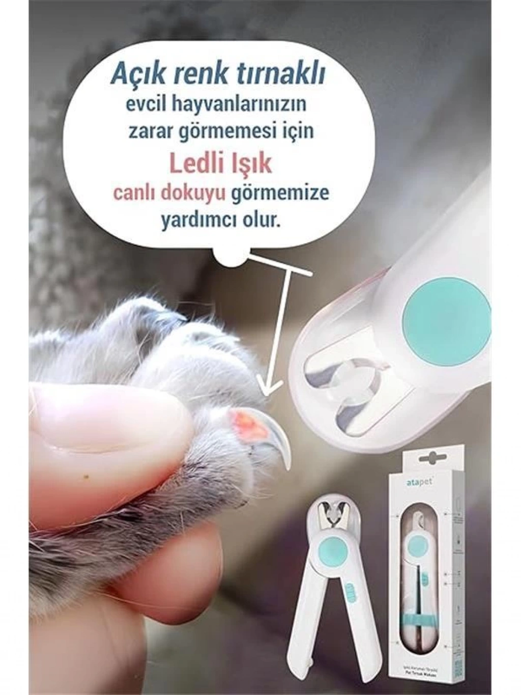 Işıklı Kedi Köpek Tırnak Makası Pet Evcil Hayvanları Için Korumalı Led'li Törpülü Tırnak Makası