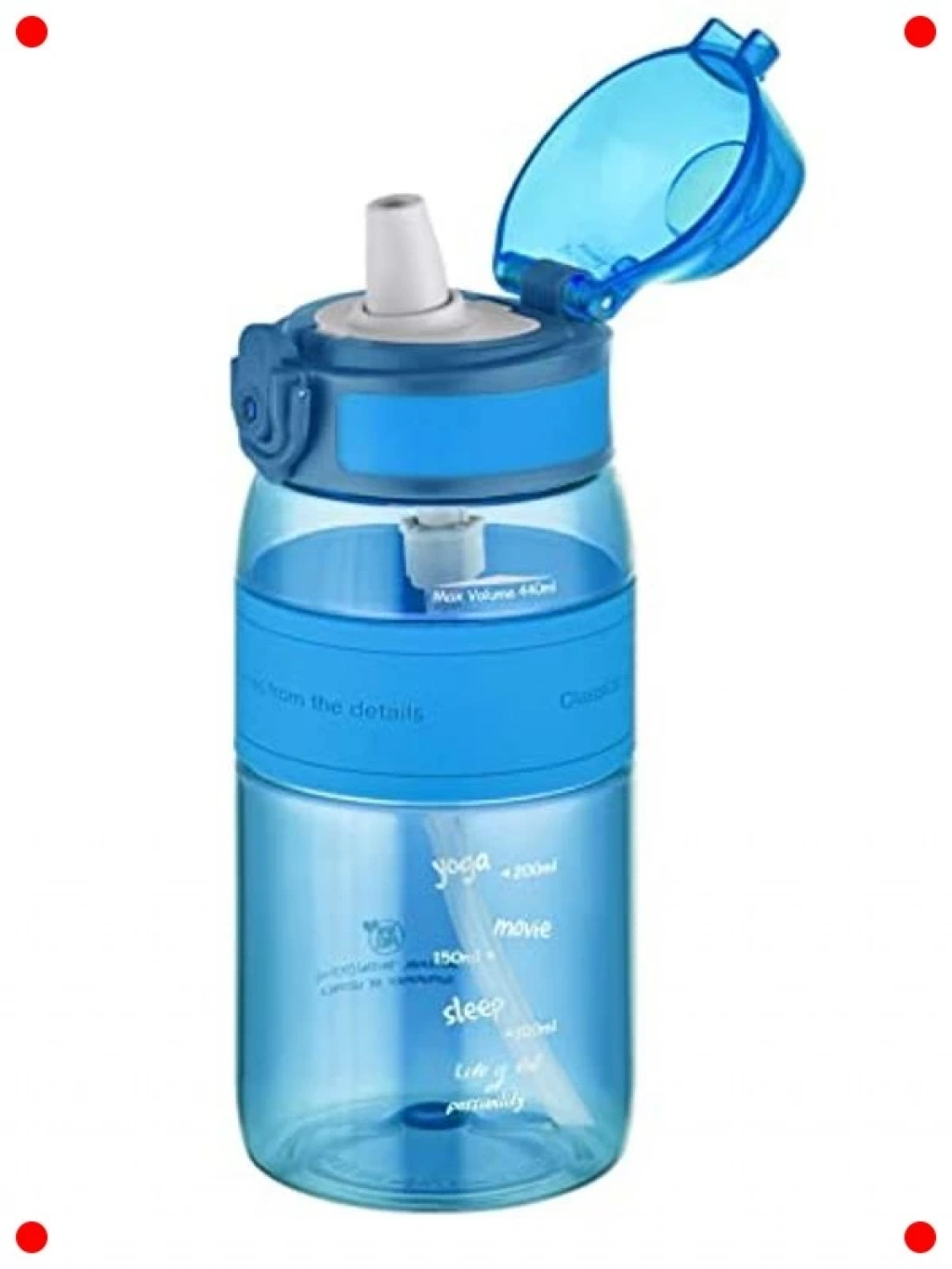 Gün boyu hidrasyon ihtiyaçlarınızı karşılayacak bu 440 ml kapasiteli su matarası, pratik özellikleriyle öne çıkar. Isırılmaz pipeti sayesinde rahatça su içebilir, sızıntı yapmayan kapağıyla çantanızda güvenle taşıyabilirsiniz. Silikon gövdesi hem darbelere karşı koruma sağlar hem de rahat bir tutuş sunar. Şeffaf malzemesi içindeki su miktarını görmenizi kolaylaştırır. Spor yaparken, okulda veya günlük kullanımda ideal bir seçenektir. Çevre dostu ve BPA içermeyen yapısıyla sağlıklı bir kullanım sunar.