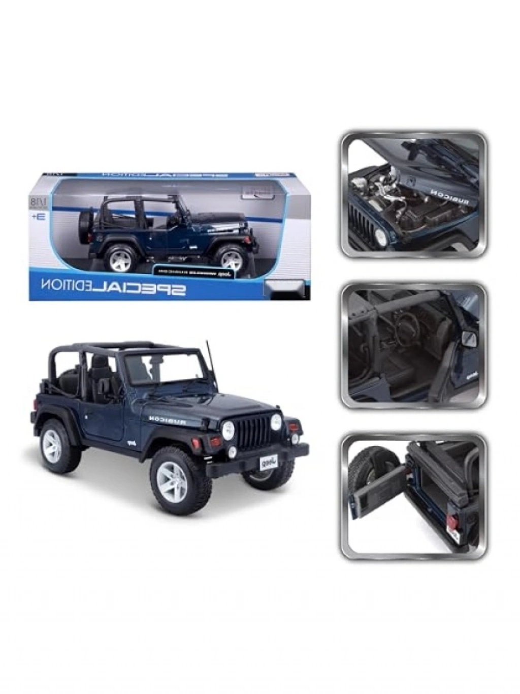 Bu 1:18 ölçekli Jeep Wrangler Rubicon modeli, detaylı tasarımıyla dikkat çekiyor. Açılan kapılar, bagaj ve tam fonksiyonlu direksiyonu ile gerçekçi bir deneyim sunar. Süspansiyonlu 4 tekerleği ve ayrıntılı şasisi ile oyuncak meraklıları için harika bir koleksiyon parçasıdır. 3 yaş altındaki çocuklar için uygun değildir, ancak büyükler için mükemmel bir hediye seçeneğidir.