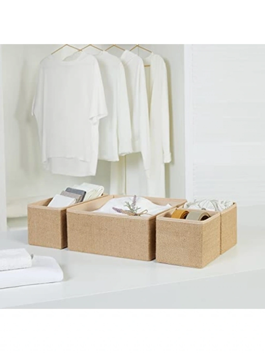 Evinizi düzenlemek için tasarlanmış bu jüt çekmece içi organizer seti, hem şık hem de işlevseldir. İç çamaşırından kozmetik malzemelerine kadar geniş bir yelpazede kullanıma uygundur. Sağlam kumaşı sayesinde uzun ömürlüdür. Katlanabilir yapısıyla kullanılmadığında yer kaplamaz. Nemli bir bezle temizlenebilir, hijyenik bir ortam sağlar.