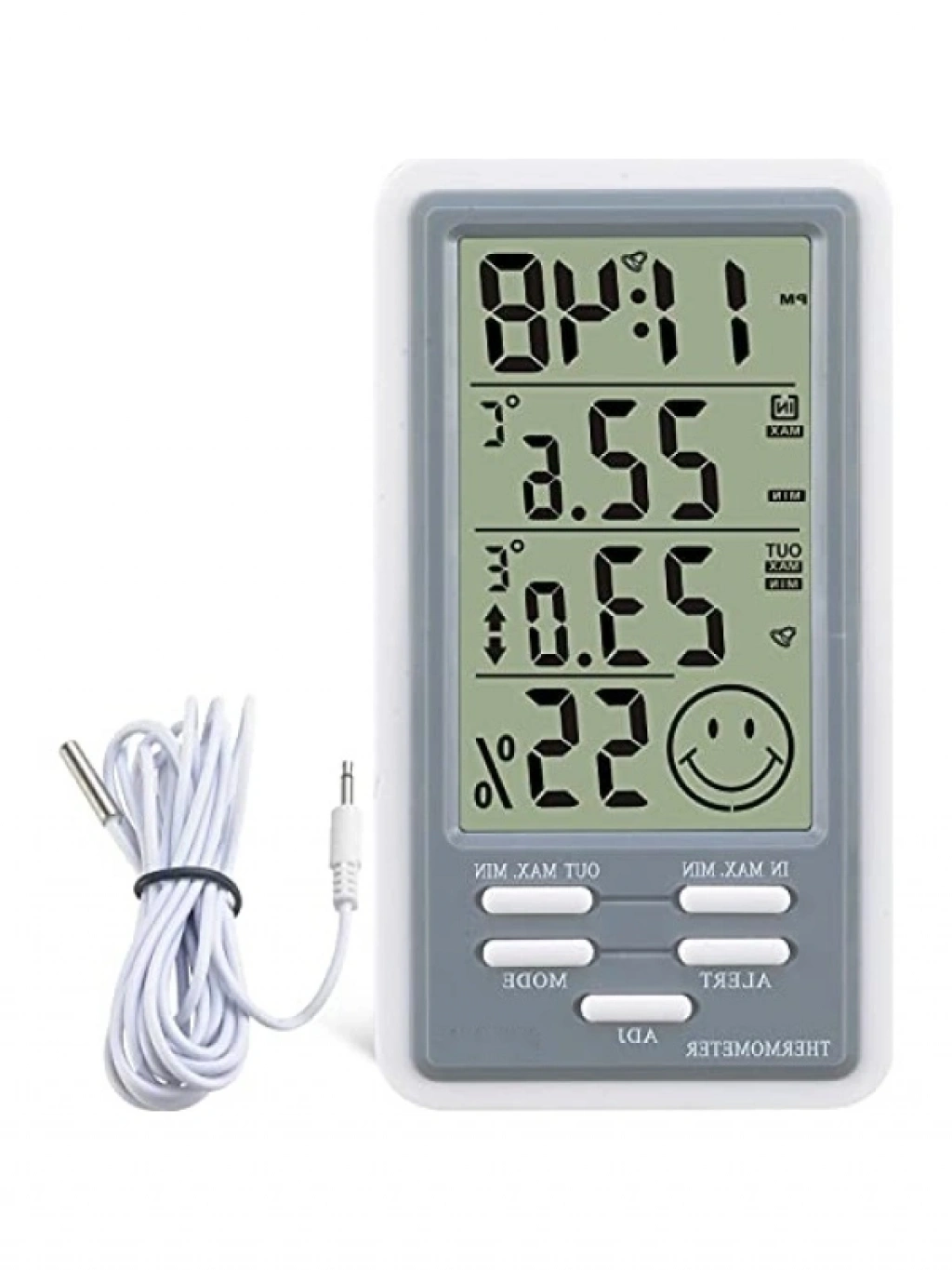 Bu kullanışlı sıcaklık ve nem ölçer, iç mekanlarda hava koşullarını takip etmek için idealdir. Kablolu yapısı ile güvenilir ölçümler sunar. Yetişkin kullanıcılar için uygun olan bu ürün, evinizdeki iklimi kontrol altında tutmanıza yardımcı olur. Pratik tasarımı ile her zaman yanınızda bulundurabileceğiniz bir araçtır.