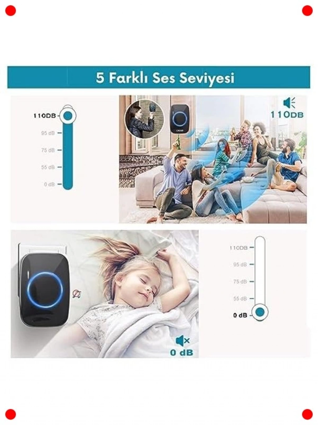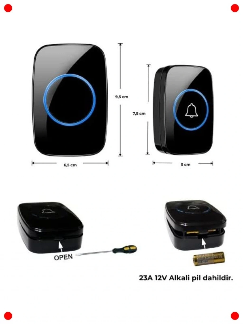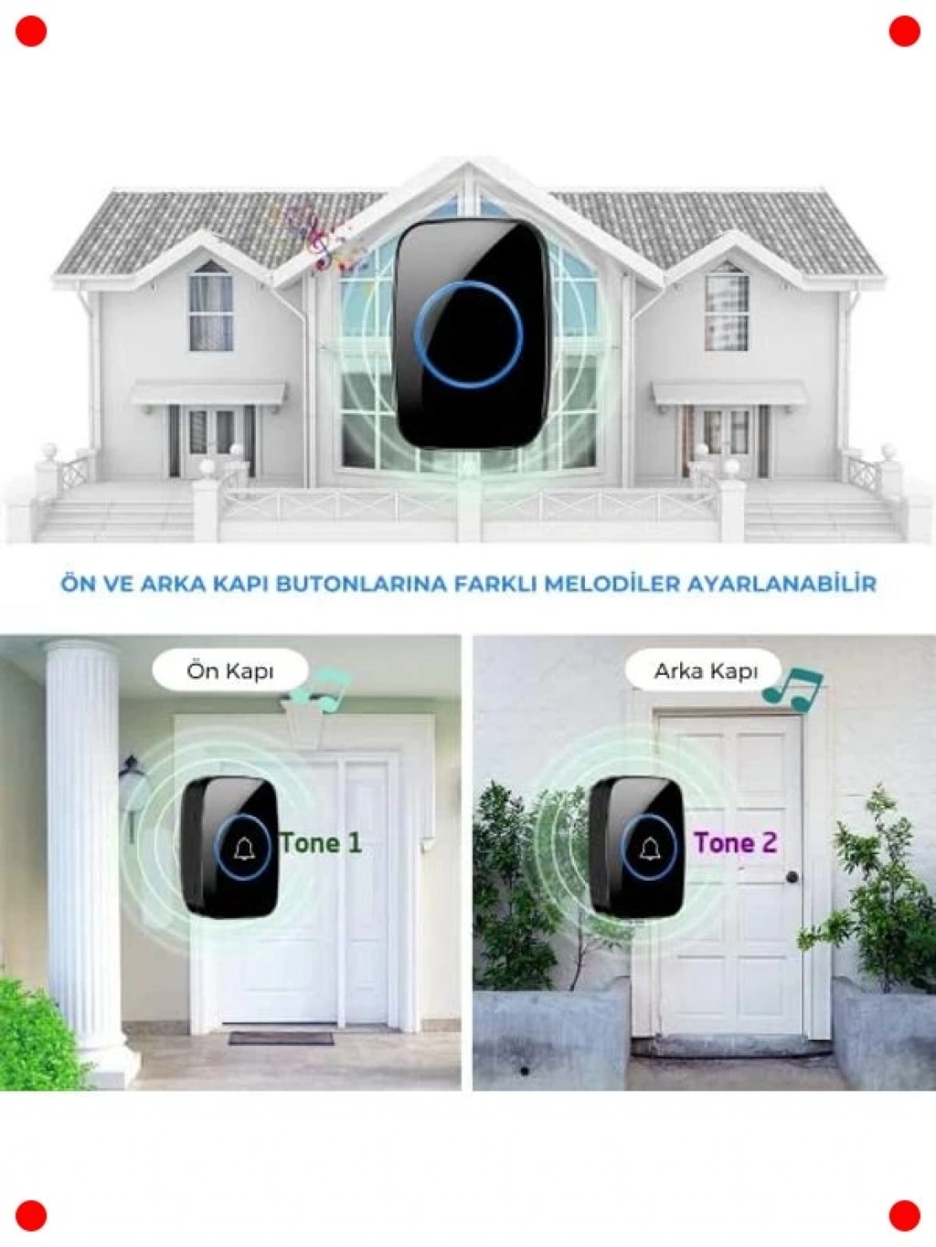 Eviniz, ofisiniz veya deponuz için güvenilir ve pratik bir çözüm sunan bu kablosuz kapı zili seti, 2 buton ve 1 alıcı ile geniş alanları kapsar. 300 metreye kadar etkileyici kablosuz menzili sayesinde, bahçeden veya farklı katlardan bile zil sesini duyabilirsiniz. 60 farklı melodi seçeneği ile kişisel tercihinize uygun bir zil sesi belirleyebilirsiniz. Alıcı üzerindeki LED ışıklı gösterge, özellikle gürültülü ortamlarda veya işitme güçlüğü çekenler için görsel bir uyarı sağlar. Kolay kurulumu ve pil gücüyle çalışma özelliği, elektrik kablolarına ihtiyaç duymadan hızlıca kullanıma başlamanızı sağlar.