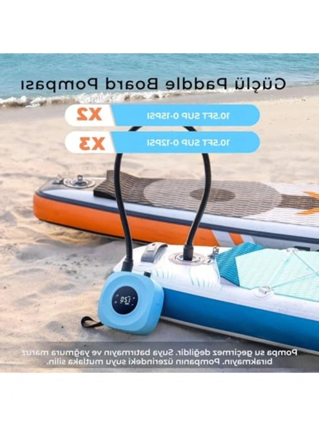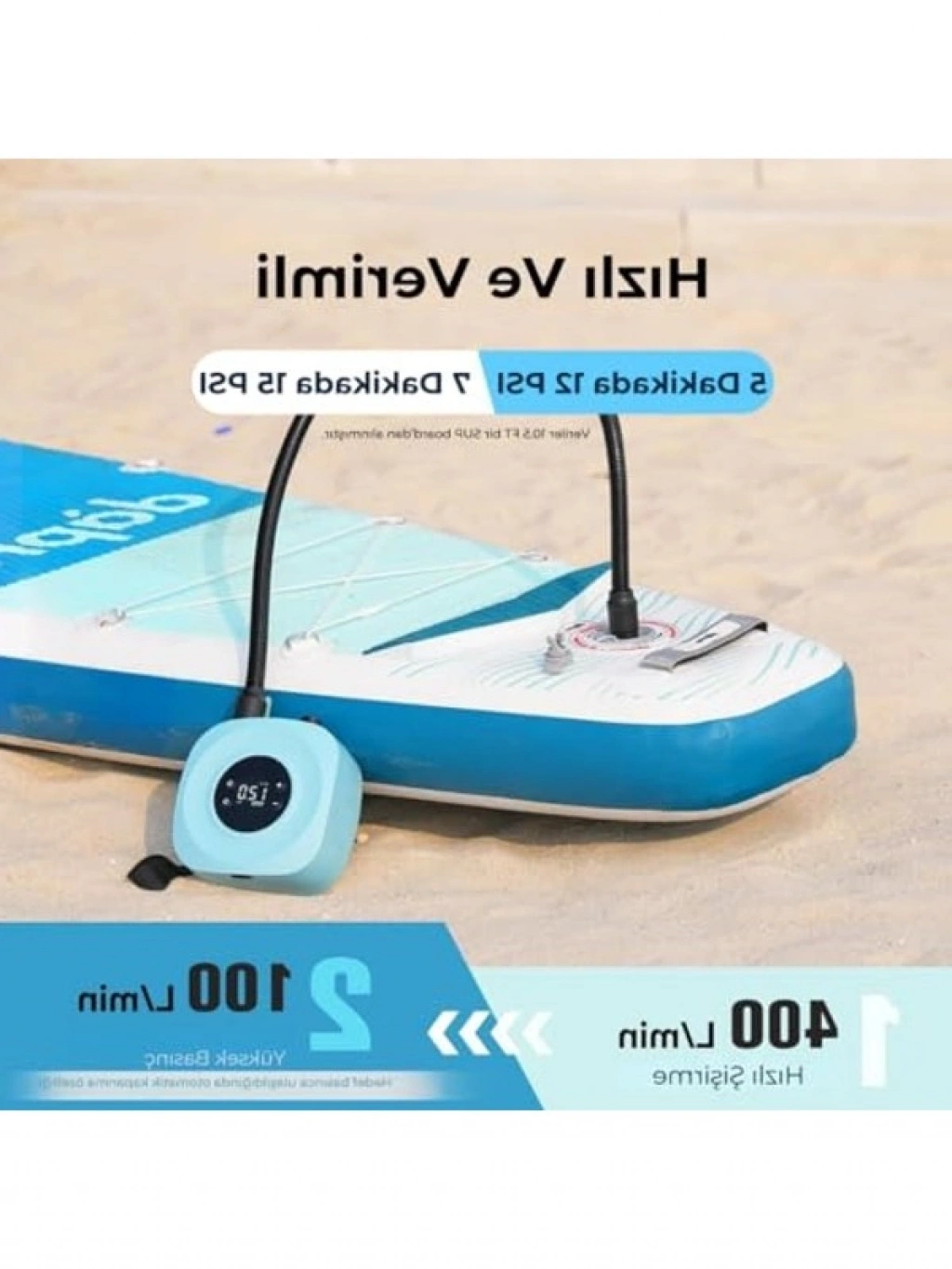 Kablosuz SUP pompası, kullanışlı LED ekran ile donatılmıştır ve taşınabilir yapısı sayesinde pratik bir kullanım sunar. Kullanılan plastik malzeme, hafiflik ve dayanıklılık sağlar. Bu özellikleriyle, su sporlarına yönelik etkinliklerinizde hızlı ve sorunsuz bir şişirme deneyimi sağlar. Taşınabilirliği, her zaman yanınızda kolayca taşıyabilmenizi mümkün kılar.