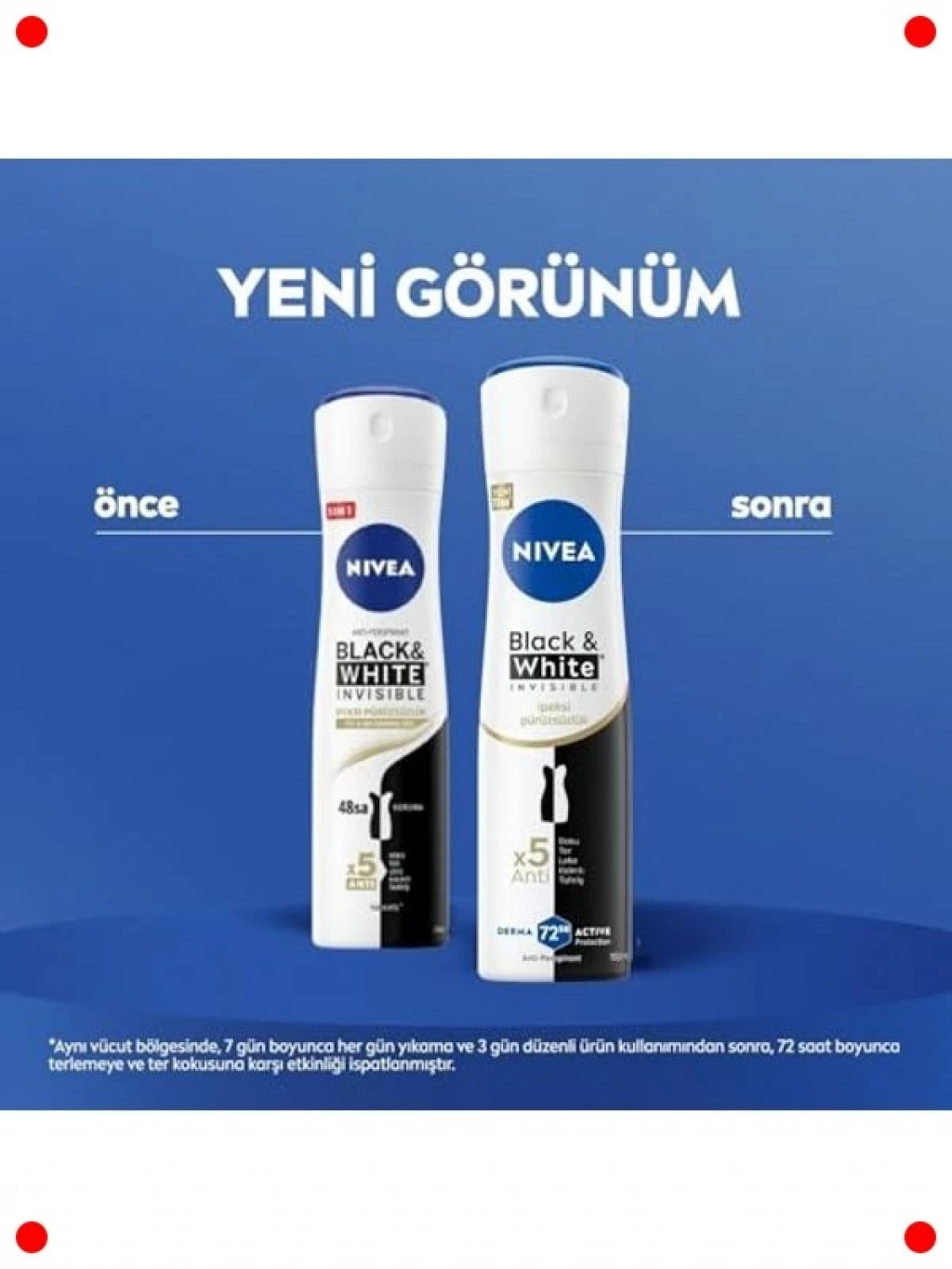 Yoğun yaşam temposunda bile kendinizi güvende hissetmenizi sağlayan bu kadın sprey deodorant, 72 saate kadar etkili anti-perspirant koruma sunar. Özel formülü, terlemeyi ve ter kokusunu önlerken, giysilerde beyaz veya sarı iz bırakmaz. Siyah giysilerinizde beyaz kalıntı, beyaz giysilerinizde sarı leke endişesi olmadan rahatça kullanabilirsiniz. İpeksi pürüzsüzlük hissi veren bu deodorant, cildinize nazik davranır ve uzun süreli ferahlık sağlar. Gün boyu süren temiz ve kuru bir his için idealdir. 150 ml.