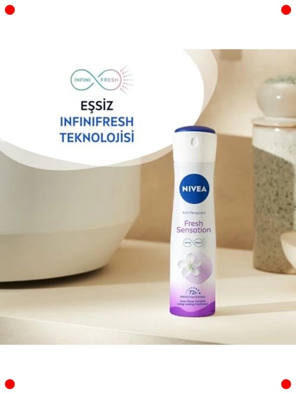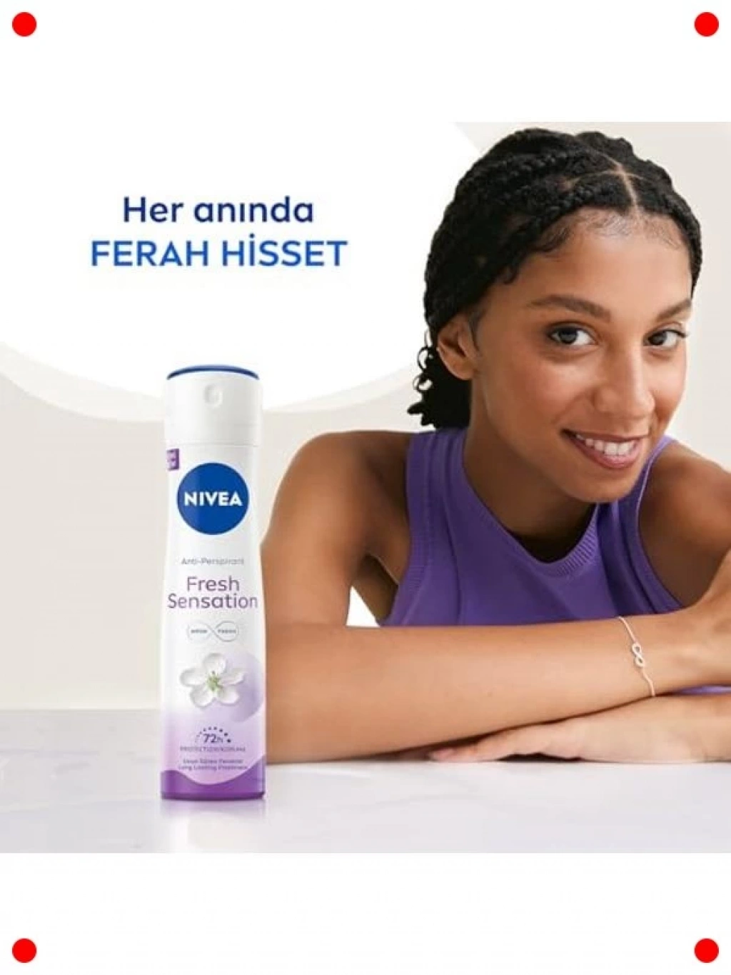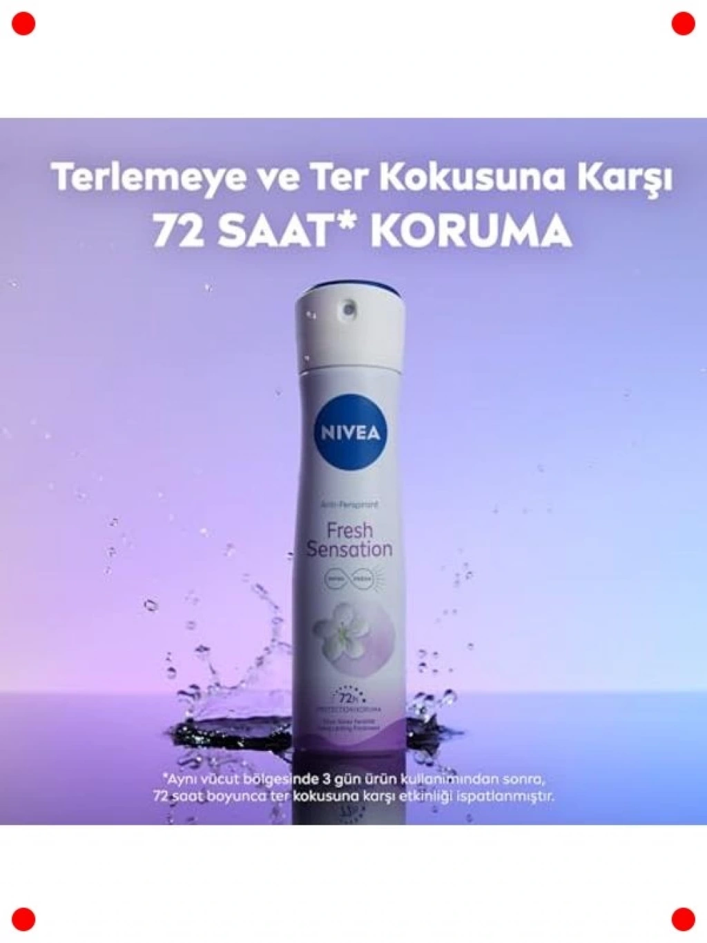 Kadınlar için özel olarak tasarlanmış bu sprey deodorant, 72 saate kadar etkili anti-perspirant koruma sağlar. Terlemeyi ve kötü kokuyu kontrol altına alarak gün boyu kendinizi ferah ve güvende hissetmenize yardımcı olur. 150 ml'lik pratik boyutuyla çantanızda veya banyonuzda kolayca yer bulur. Cilde nazik davranan formülü sayesinde tahrişe yol açmaz. Hızlı kuruyan yapısı giysilerde iz bırakmaz. Yoğun yaşam tarzınıza uyum sağlayan bu deodorant, özgüvenli ve aktif günler geçirmenizi destekler.