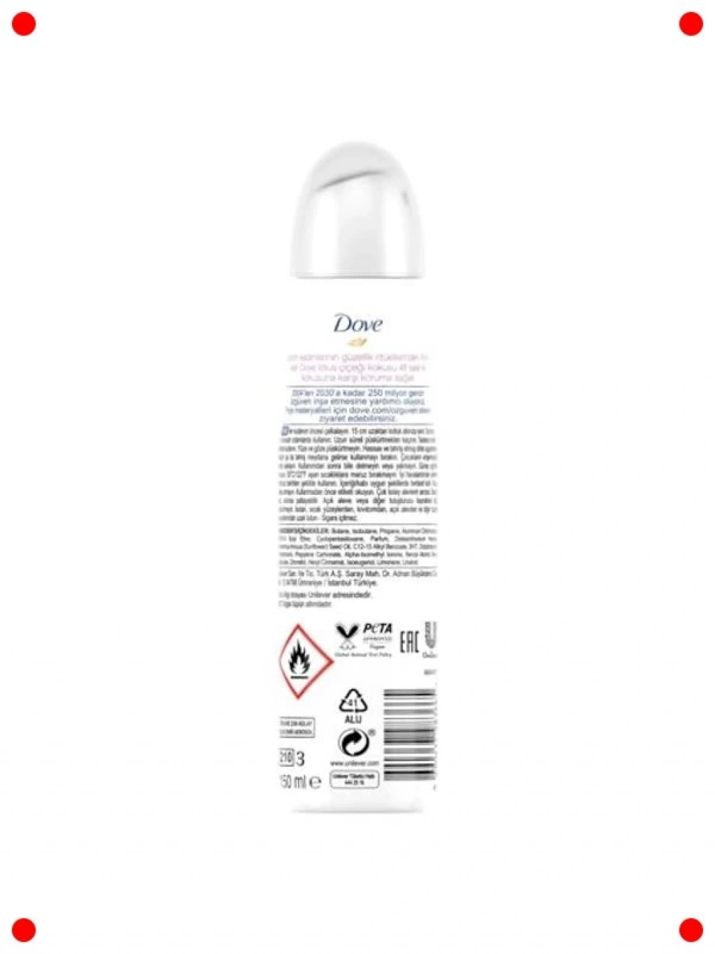 Lotus çiçeğinin huzur veren ve ferahlatıcı kokusuyla gün boyu tazelik sunan bu kadın sprey deodorant, cildinize ışıltılı bir bakım yapar. 48 saate kadar etkili koruma formülüyle ter ve kötü koku oluşumunu engeller, sizi her an güvende ve kendinize güvenli hissettirir. Özel formülü, cildinizi nemlendirerek daha pürüzsüz ve yumuşak bir doku kazandırır. Hızlı kuruyan yapısı sayesinde kıyafetlerinizde leke bırakmaz, rahat bir kullanım sağlar. Zarif ve hafif kokusu, gün boyu size eşlik ederken duyularınızı okşar. 150 ml'lik pratik boyutuyla çantanızda veya banyoda kolayca yer bulur, her an yenilenmiş hissetmek için idealdir.