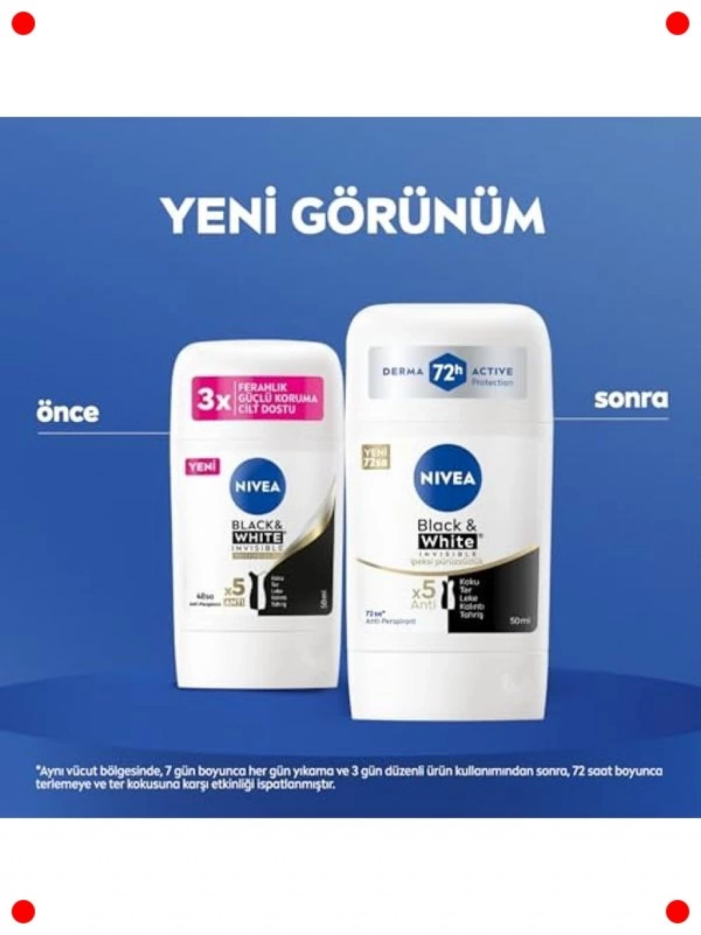 Giyiminize özen gösterirken kendinizi güvende hissetmenizi sağlayan bu stick deodorant, 72 saate kadar etkili anti-perspirant koruma sunar. Terlemeye ve kötü kokuya karşı maksimum koruma sağlarken, siyah kıyafetlerde beyaz iz, beyaz kıyafetlerde ise sarı leke oluşumunu engeller. Cildinize ipeksi bir pürüzsüzlük verir ve rahat bir kullanım sunar. Alkol içermeyen özel formülü, hassas ciltler için bile uygundur. Uzun süreli ferahlık hissi ve güvenilir koruma ile gün boyu kendinize güvenle hareket edin. Küçük boyutu sayesinde çantanızda kolayca taşıyabilir, tazelenmek istediğiniz her an yanınızda bulundurabilirsiniz. Dermatolojik olarak test edilmiştir.