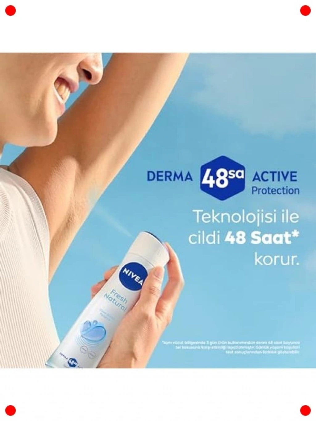 Uzun süreli ferahlık ve etkili ter kokusu koruması sunan bu kadın sprey deodorant, gün boyu kendinizi güvende hissetmenizi sağlar. Özel formülü, cildinize nazik davranırken 48 saate kadar süren etkili bir koruma kalkanı oluşturur. Okyanus özlerinden ilham alan hafif ve hoş kokusuyla tazelenmiş bir his bırakır. Alüminyum içermeyen yapısı sayesinde cildinizin doğal dengesini korur ve tahrişi en aza indirmeye yardımcı olur. 150 ml'lik pratik boyutuyla çantanızda kolayca taşıyabilir, istediğiniz zaman taze bir başlangıç yapabilirsiniz. Her cilt tipi için uygundur.