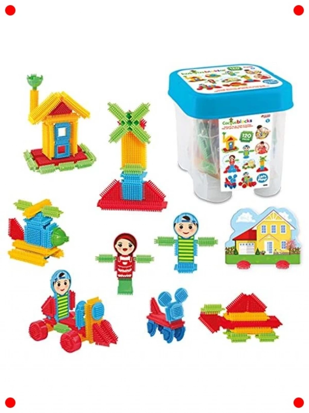 Çocuklarınızın yaratıcılığını ve motor becerilerini geliştiren bu 120 parçalık kaktüs bloklar yapı seti ile eğlence hiç bitmesin! Farklı boyut ve şekillerdeki renkli bloklar, çocukların hayal güçlerini kullanarak çeşitli yapılar, figürler ve nesneler inşa etmelerine olanak tanır. Kaktüs şeklindeki bağlantı noktaları, parçaların kolayca birleşmesini ve ayrılmasını sağlayarak küçük eller için ideal bir oyun deneyimi sunar. Çocuklar, bu bloklarla oynarken el-göz koordinasyonlarını, uzamsal algılarını ve problem çözme yeteneklerini geliştirirler. Dayanıklı ve çocuk sağlığına uygun malzemelerden üretilen bu set, pratik bir kovada gelir, böylece hem kolayca saklanabilir hem de taşınabilir.