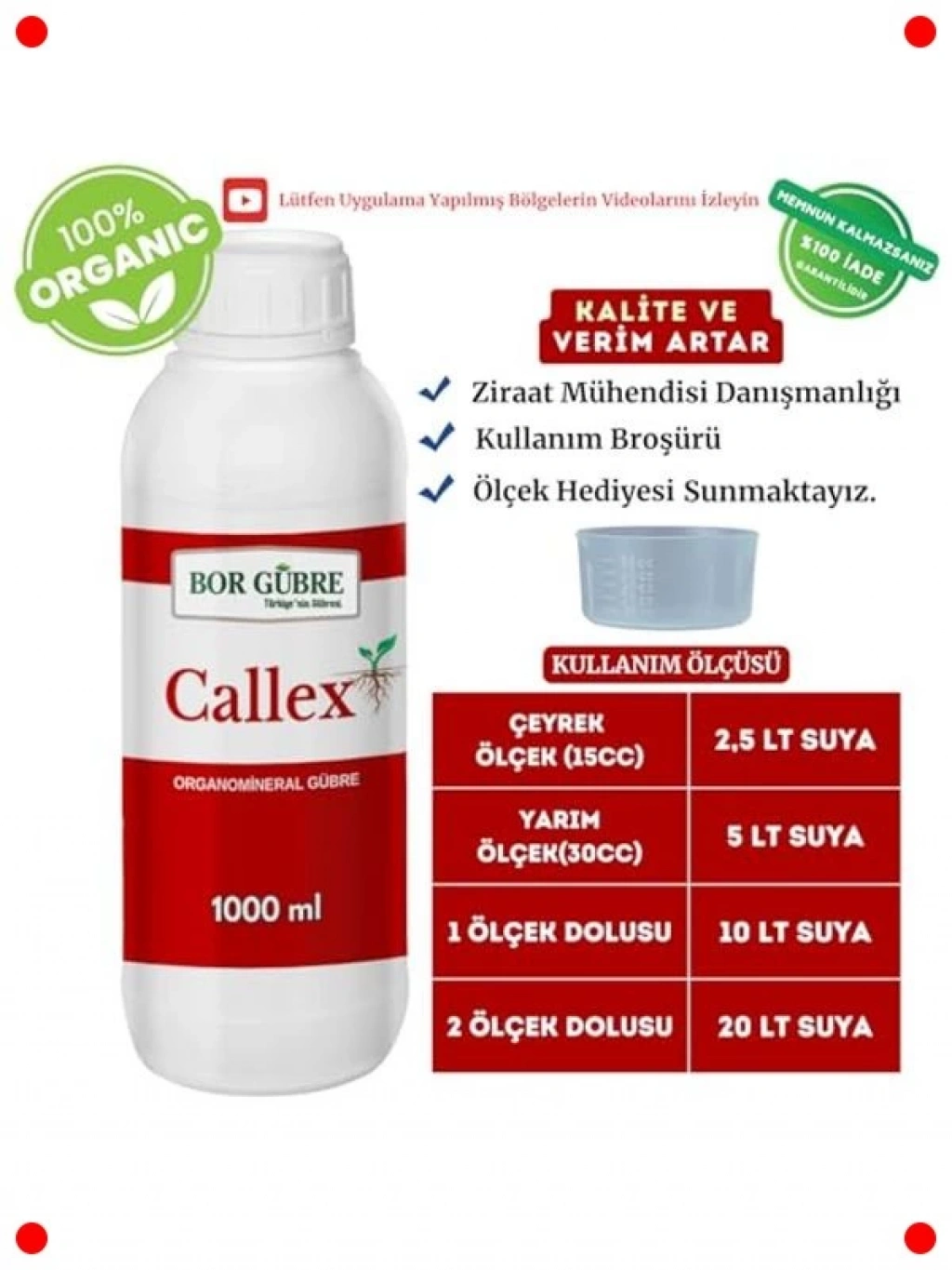 Bitkilerinizin kalsiyum ihtiyacını etkili bir şekilde karşılamak için özel olarak formüle edilmiş bu 1000 ml sıvı organik gübre. Bitkileri güçlendirir, hastalıklara ve zararlılara karşı direncini artırır. Kalsiyum, kök gelişimi, hücre duvarı yapısı ve meyve kalitesi için hayati öneme sahiptir. Düzenli kullanımı, bitkilerinizin daha sağlıklı ve verimli büyümesini destekler. Yaprak ve gövde sağlığını iyileştirirken, çiçeklenme ve meyve tutumunu artırır. Tüm bitki türleri için güvenle kullanılabilecek kolay uygulanabilir bir üründür, bitkilerinizin potansiyelini maksimize edin.
