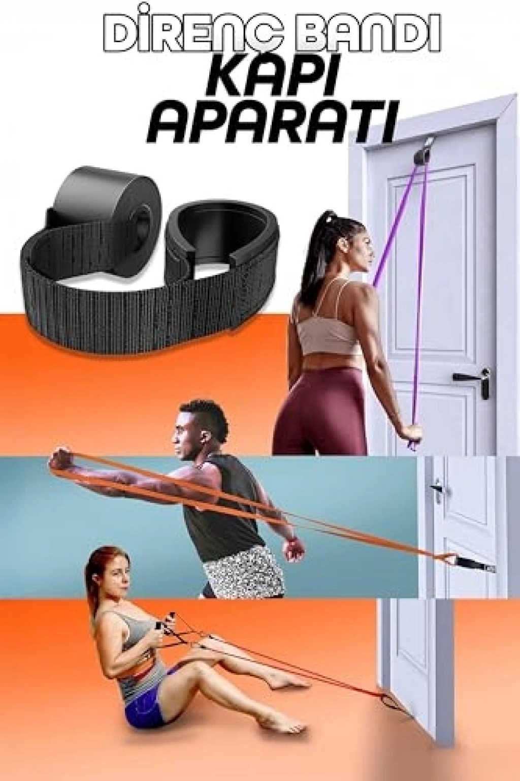 Kapı aparatı ile birlikte sunulan bu direnç bandı, evde spor yaparken kullanıma uygundur. Çeşitli egzersizleri kolaylıkla yapabilmeniz için tasarlanmış bir aparattır.