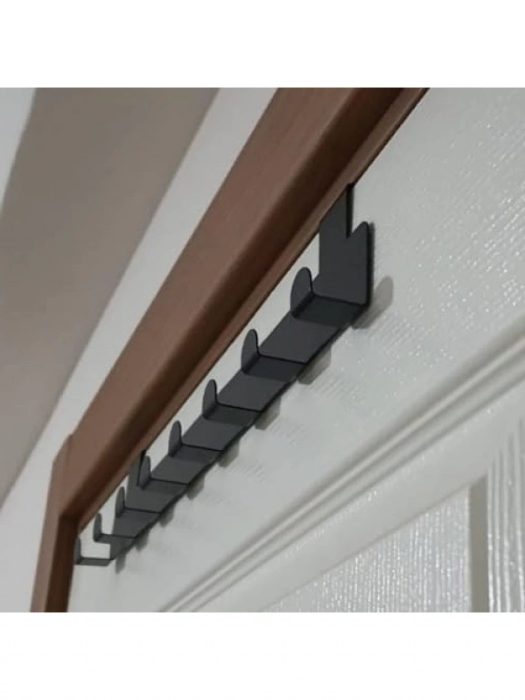 Bu pratik kapı arkası askılık, delmeden montaj imkanı ile kolaylık sağlar. 8 kancalı düzeni sayesinde birçok eşyayı düzenli bir şekilde asabilirsiniz. Modern mat siyah tasarımı ile her dekor ile uyum sağlayarak estetik bir görünüm sunar. Amerikan tipi kapılara uyumlu yapısıyla banyo, oda ve antre gibi farklı alanlarda kullanılabilir. Dayanıklı metal malzemeden üretilmiştir ve uzun ömürlüdür.
