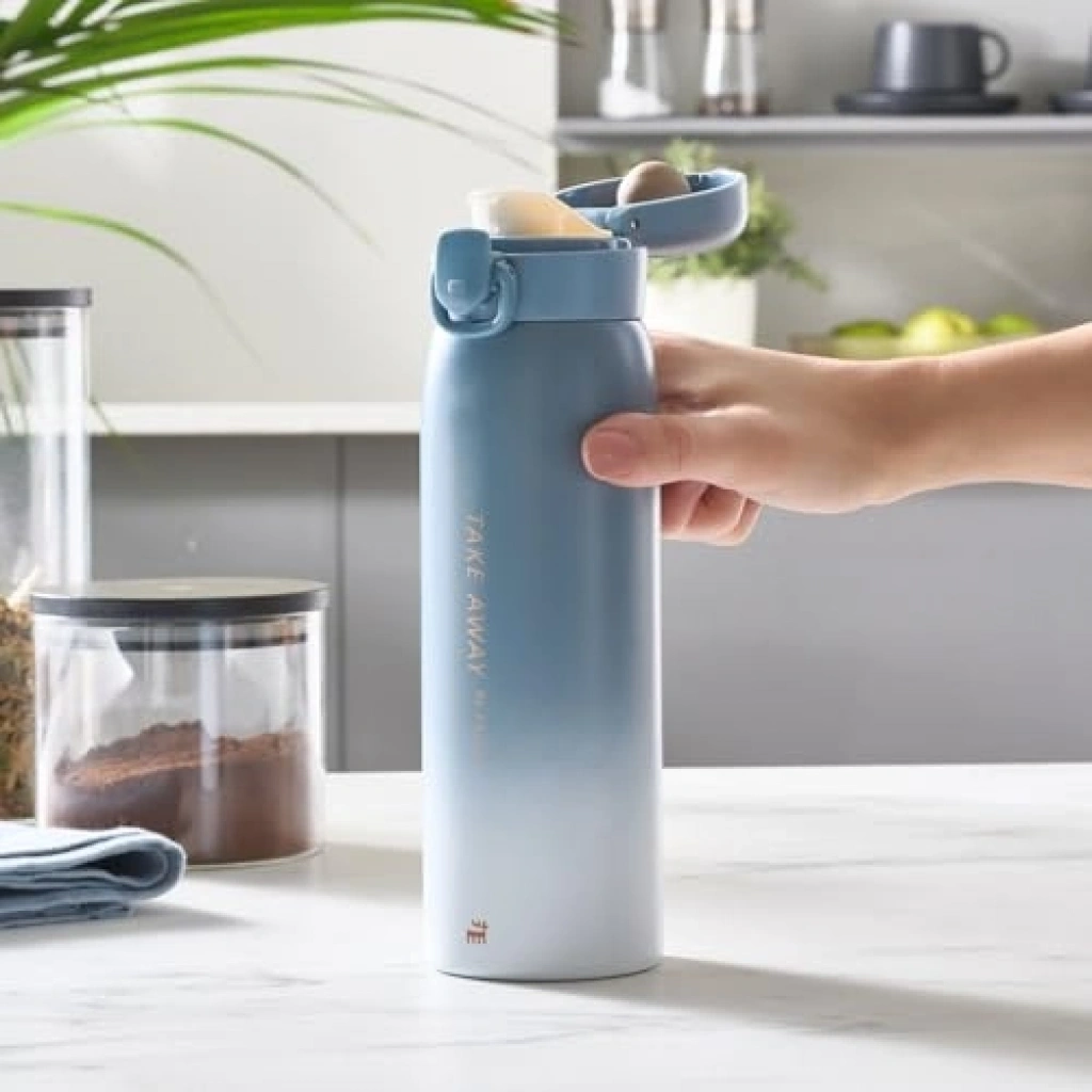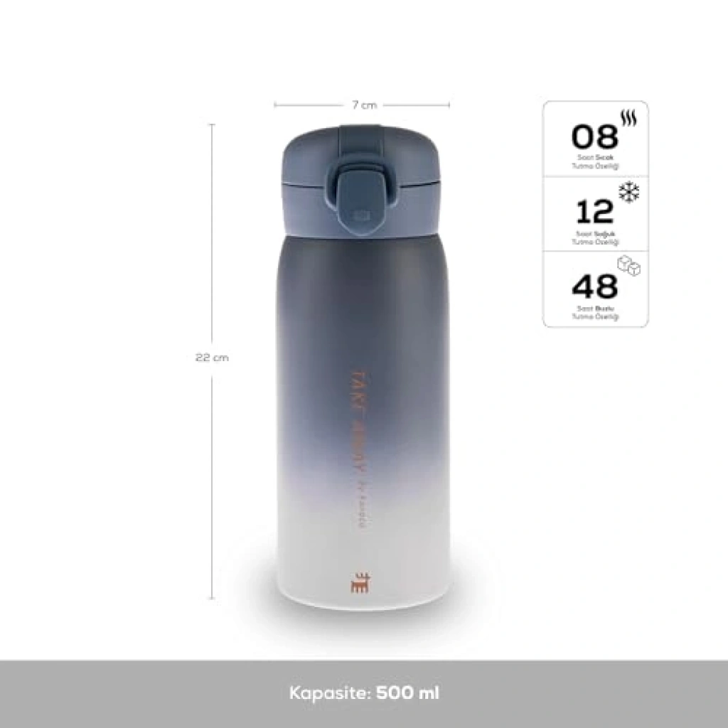 500 ml kapasiteli çelik sızdırmaz termos, mavi rengiyle şıklığı ve fonksiyonelliği bir araya getiriyor. Kullanışlı kapağı sayesinde içeceklerinizi güvenle taşırken, sıcak ve soğuk içeceklerinizi ideal sıcaklıkta korur.