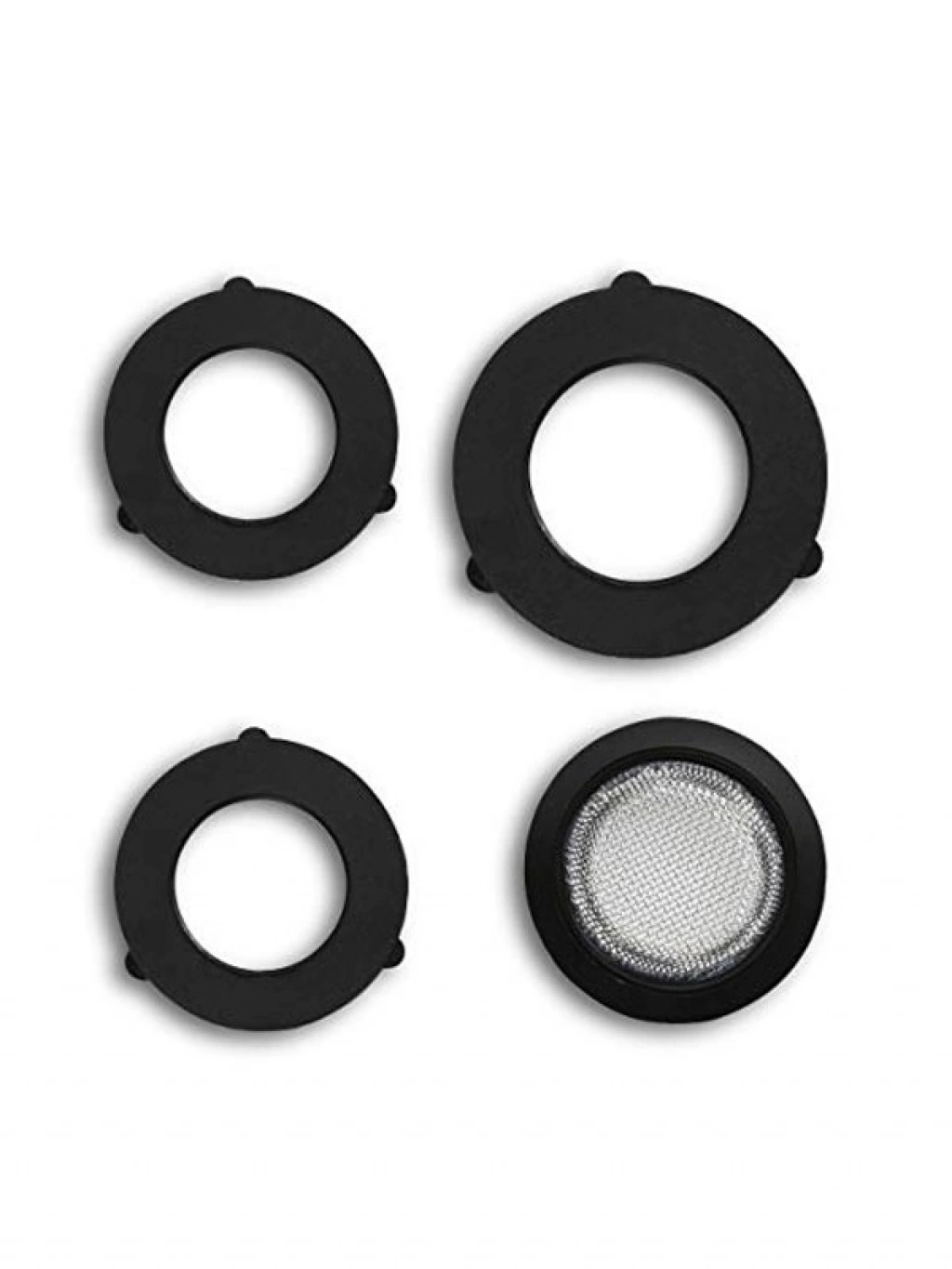 Üç contadan oluşan bu conta seti, iki adet 3/4" ve bir adet 1" boyutlarındaki contaları içerir. Aynı zamanda 3/4" dişli musluk konektörleri için ön filtre de sunar. En yaygın kullanılan üç hortum çapı ile tüm mevcut click sistemleri ile uyumludur.