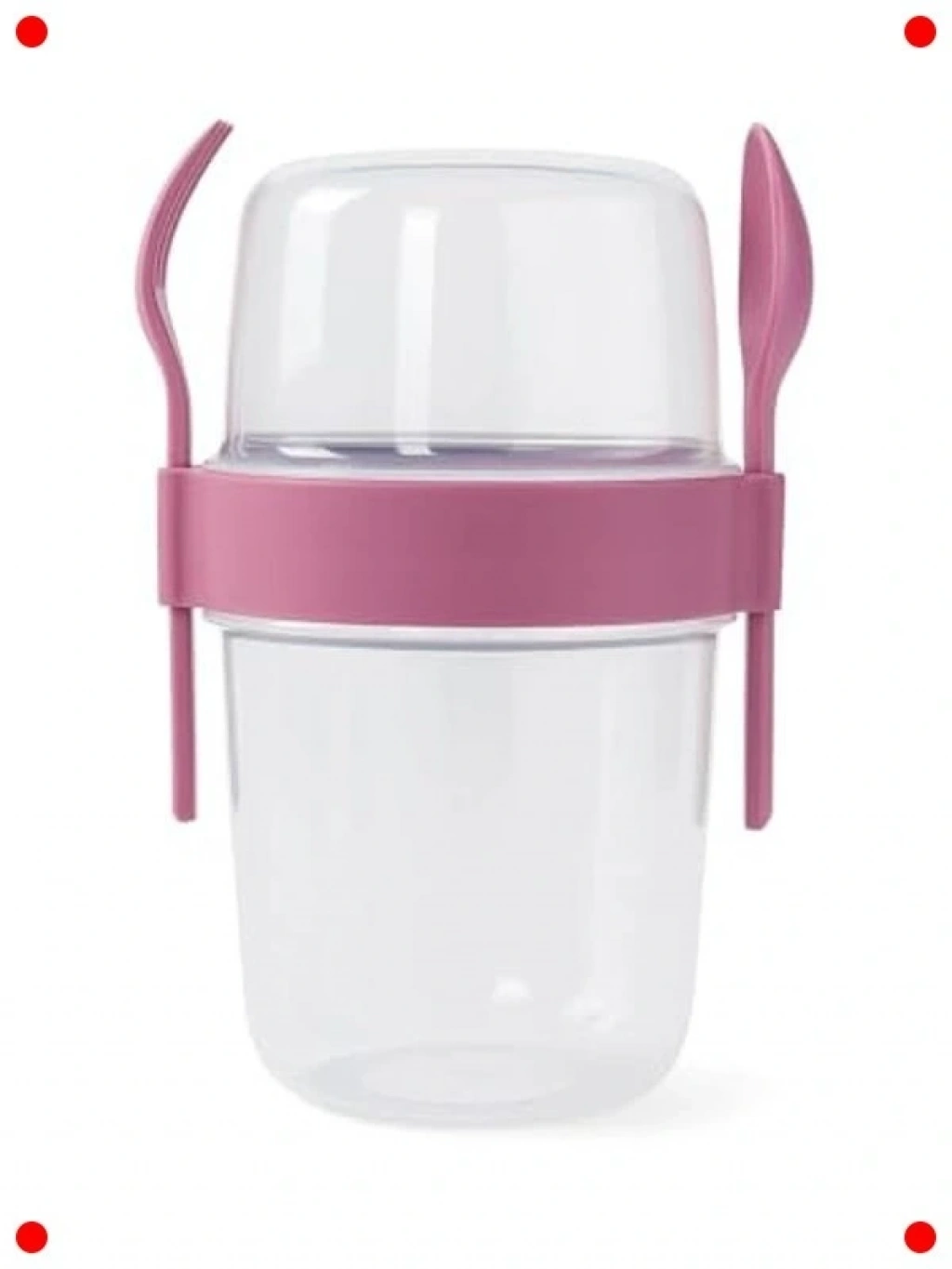 Kahvaltı ve ara öğünlerinizi yanınızda taşımak hiç bu kr pratik olmamıştı! Bu 1100 ml kapasiteli, sızdırmaz müsli ve yoğurt kabı, yoğun yaşam tarzınız için ideal bir çözümdür. Üstün sızdırmazlık özelliği sayesinde çantanıza gönül rahatlığıyla bilir, dökülme endişesi yaşamazsınız. Kapağına entegre kaşığı ile her zaman hazırsınız; ekstra çl-kaşık taşıma derdi ortn kalkar. Geniş iç hac, müsli, granola, yoğurt, meyve veya sal gibi birçok farklı yiyeceği ayrı ayrı taşımanıza olanak tanır. Sağlıklı beslenmeyi hareket halindeyken bile sürdürmek isteyenler için vazgeçilmez bir yardımcıdır. BPA içermeyen sağlıklı malzemeden üretilştir ve pembe rengiyle şık bir görünüm sunar. Pratik ve şık tasarımıyla öğünlerinizi keyifli hale getirin.