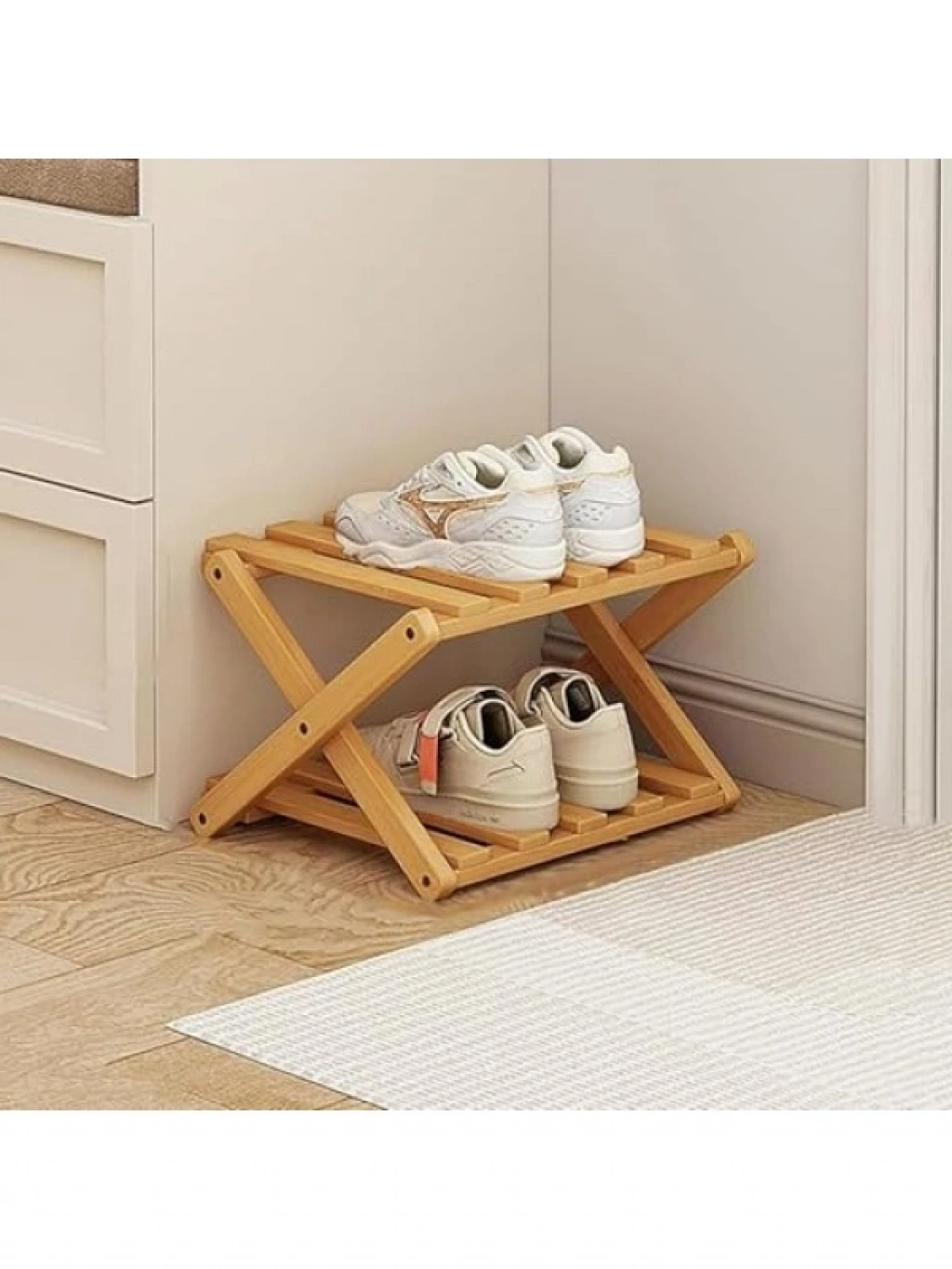 Bu pratik katlanabilir ayakkabı rafı, doğal bambu malzemeden üretilmiştir ve şık bir görünüm sunar. İki katlı tasarımı ile ayakkabılarınızı düzenli bir şekilde saklamanızı sağlar. Kompakt boyutları sayesinde dar alanlarda bile rahatlıkla kullanabilir, yerden tasarruf edebilirsiniz. Kolay montaj imkanı ile saniyeler içinde kullanıma hazır hale gelir.