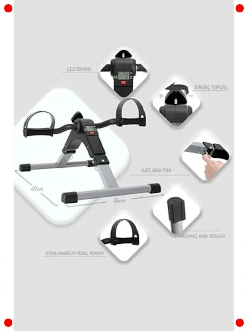 Evde veya ofiste egzersiz yapmanın en pratik yolu olan bu katlanabilir mini egzersiz bisikleti, kompakt tasarımıyla her yere sığar. Bacak ve kol kaslarınızı çalıştırmak için idealdir, kan dolaşımını hızlandırır ve hafif kardiyo antrenmanları yapmanıza olanak tanır. Ayarlanabilir direnç seviyeleri sayesinde egzersizinizi kişisel ihtiyaçlarınıza göre özelleştirebilirsiniz. Dijital ekranı, hız, mesafe, süre ve yakılan kalori gibi bilgileri takip etmenizi sağlar. Kolayca katlanabilir yapısıyla yerden tasarruf eder ve taşınabilirliği sayesinde her yerde egzersiz yapma imkanı sunar. Sağlıklı bir yaşam tarzı için mükemmel bir yatırımdır.
