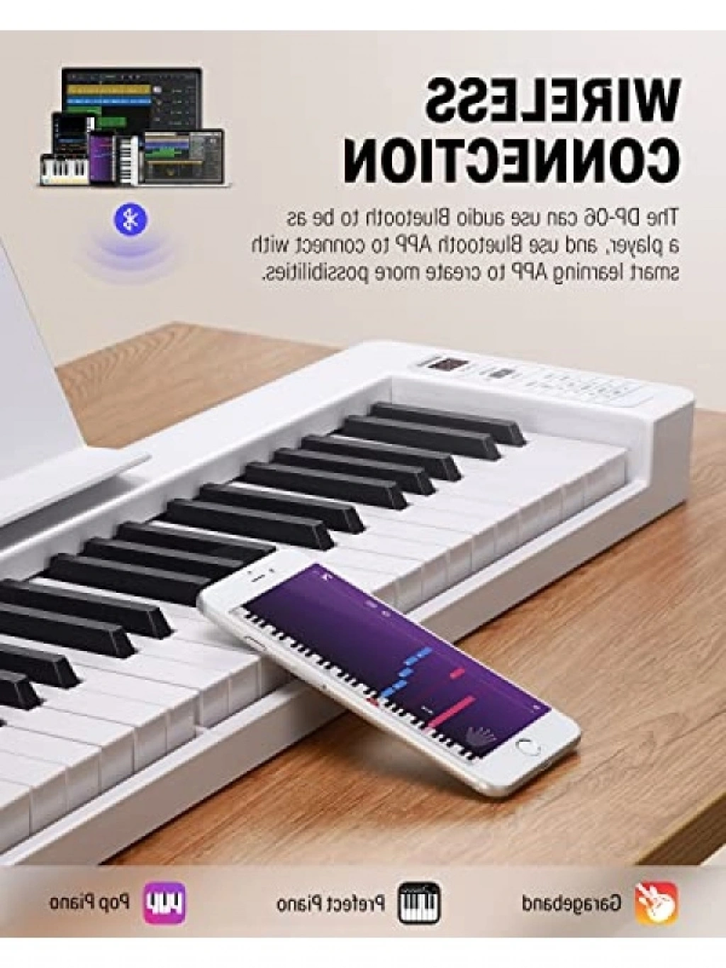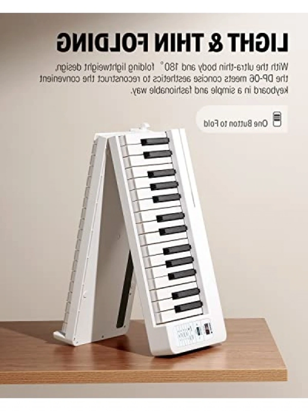 Ultra ince gövde yapısı ile dikkat çeken bu katlanabilir piyano, 61 tuşu ve yarı ağırlıklı klavyesi ile müzik tutkunlarının beğenisine sunuluyor. 128 ses rengi, 21 demo şarkı ve 128 ritim stili ile müzikal yaratıcılığınızı artırır. Bluetooth bağlantı özelliği ile müziğinizi kolayca paylaşabilir, taşınabilir yapısı ile istediğiniz her yere götürebilirsiniz.