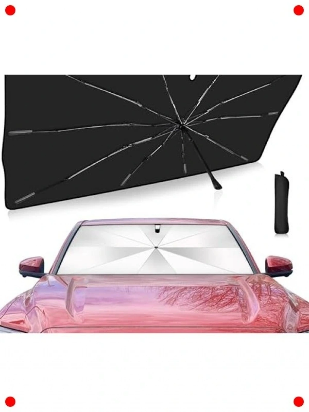Yenilikçi şemsiye tasarımlı araç ön cam güneşliği ile aracınızın içini kavurucu sıcaktan koruyun. Yüksek yansıtıcı yüzeyi sayesinde UV ışınlarının ve güneş ısısının %99'una kadarını bloke eder, böylece aracınızın iç sıcaklığını önemli ölçüde düşürür. Bu sayede direksiyon, koltuklar ve gösterge paneli gibi iç aksamların ömrü uzar ve deformasyonları engellenir. Katlanabilir şemsiye yapısı sayesinde kullanmadığınız zamanlarda kolayca toplanabilir ve çok az yer kaplar. Otoler ve SUV'lar için uygun olan 140x79 cm boyutlarıyla geniş bir uyumluluk sunar. Kurulumu sadece saniyeler sürer, aracınıza binmeden önce serin ve konforlu bir ortam sağlar.
