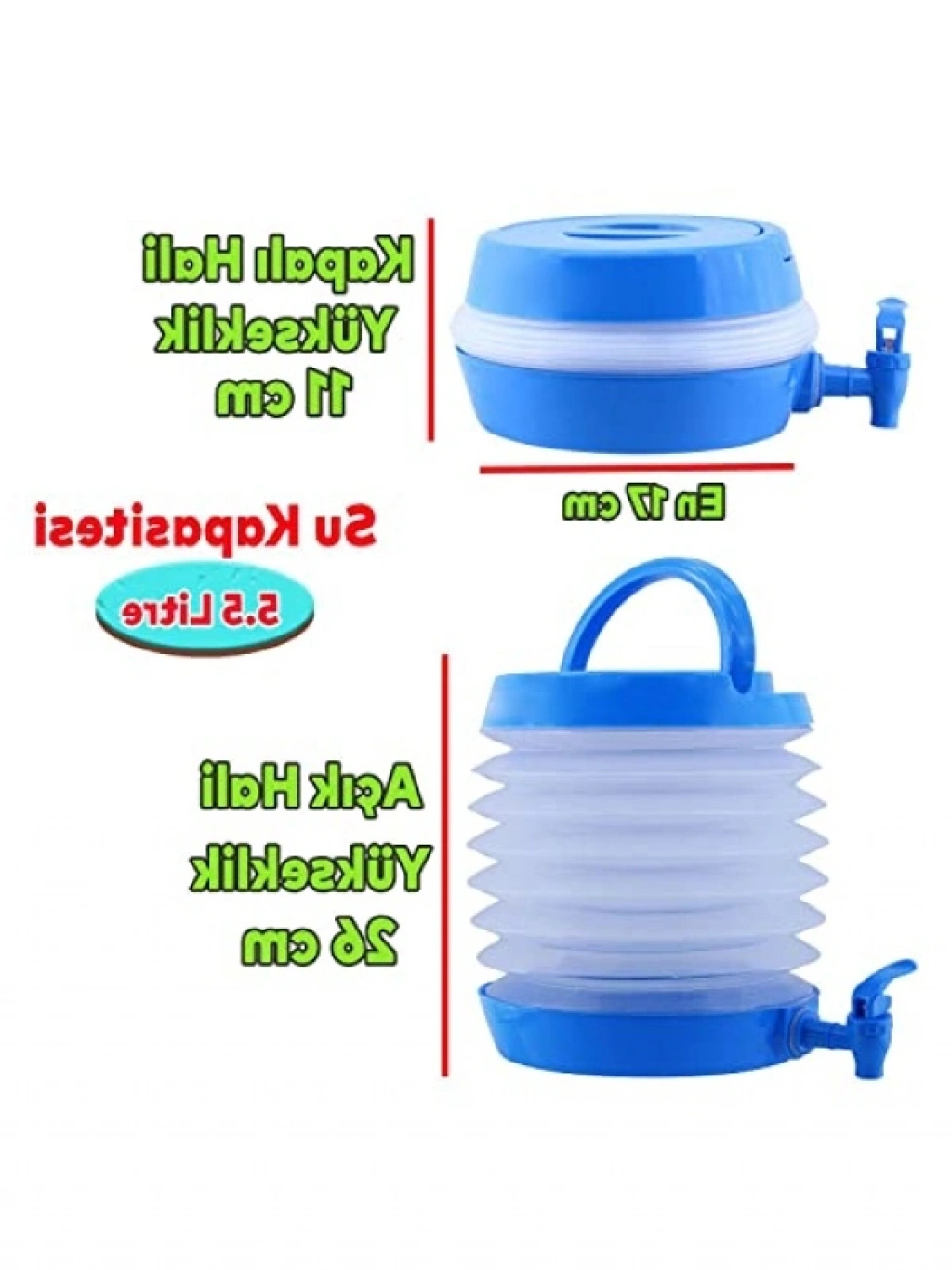 Bu dayanıklı ve hafif su bidonu, 5.5 litre kapasitesi ile piknik ve kamp aktiviteleri için mükemmeldir. Katlanabilir tasarımı sayesinde kolayca taşınabilir ve depolanabilir. Çeşmeli yapısı, içeceklerinizi kolayca dökmenizi sağlarken, dayanıklı malzemesi ile uzun süreli kullanım sunar. Günlük kullanıma da uygun olan bu termos, hem su hem de diğer meşrubatlar için idealdir.