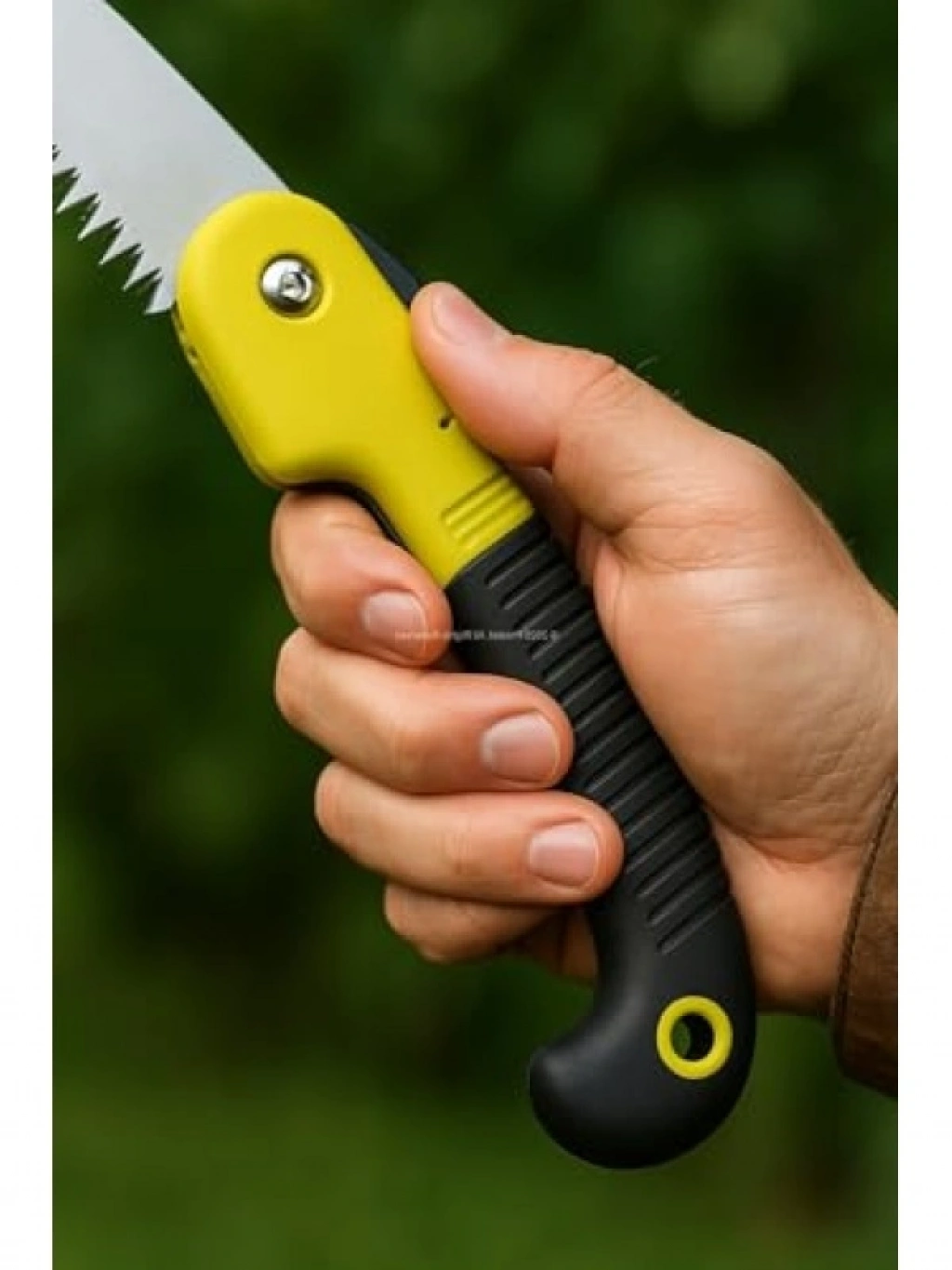 Pratik katlanır tasarımı ile dikkat çeken bu budama testeresi, 18 cm uzunluğundaki paslanmaz çelik bıçağı sayesinde sert ağaç dallarını kolayca kesebilir. Kaymaz ergonomik sapı, güvenli bir tutuş sağlar ve uzun süreli kullanımlarda bile konfor sunar. Güvenlik kilidi özelliği, testerelerin istenmeyen açılmalarına karşı koruma sağlar. Hafif yapısı ile kolay taşınabilir ve bahçe işlerinde, doğa yürüyüşlerinde ve kamp aktivitelerinde idealdir.