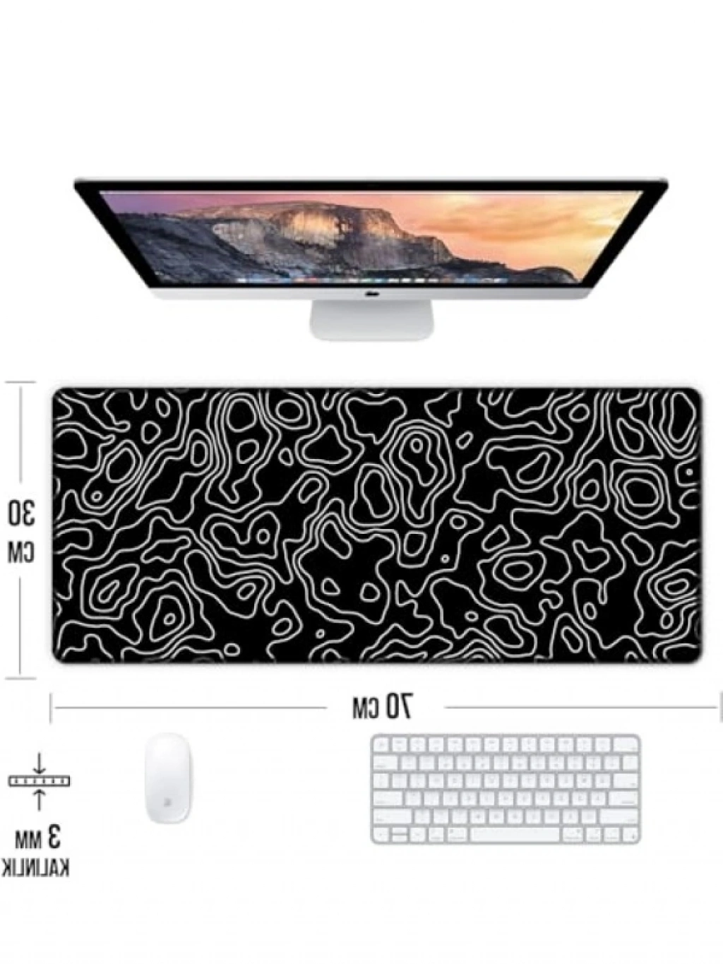 Bu oyun mouse pad'i, kaymaz bir yüzeye sahiptir ve oyun esnasında fare hareketlerinin hassasiyetini artırır. 70x30 cm ölçüleri ile geniş bir çalışma alanı sunar. Siyah ve beyaz desenli tasarımı ile hem şık hem de fonksiyoneldir. Oyun ve ofis kullanımı için idealdir, dayanıklı malzemeden üretilmiştir.