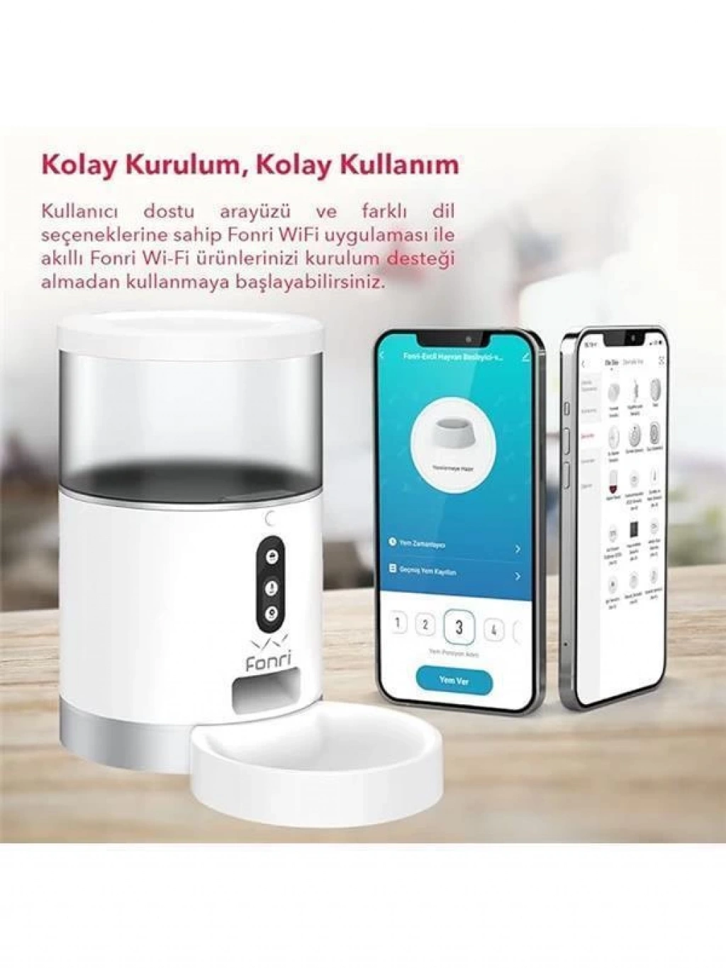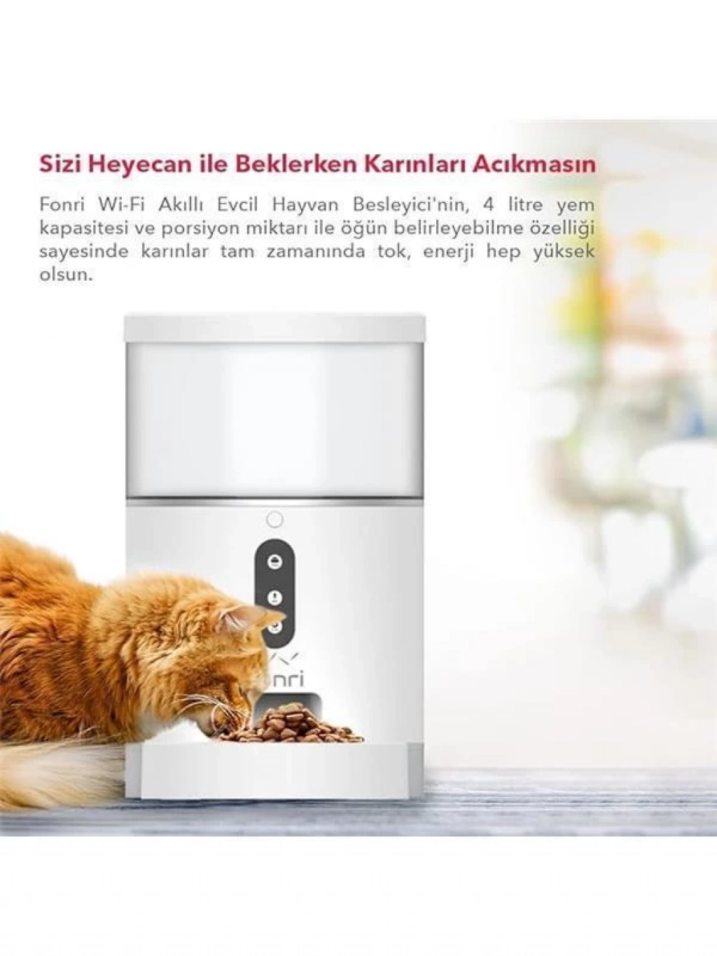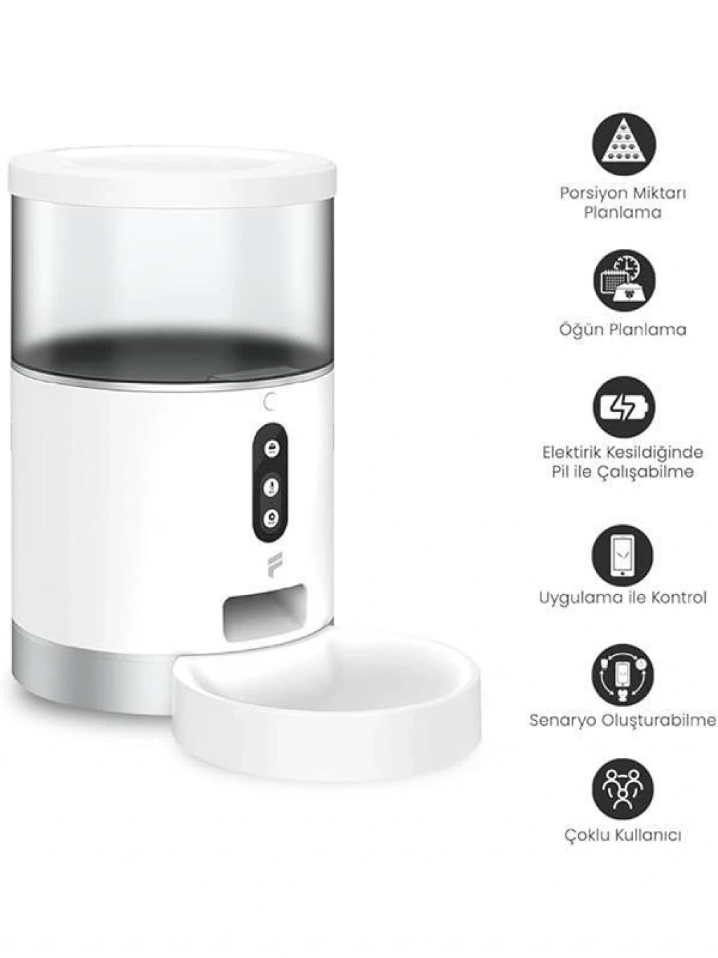 Bu ürün hakkında Sizi Heyecan ile Beklerken Karınları Acıkmasın WiFi Akıllı Evcil Hayvan Besleyicinin 4 litre yem kapasitesi ve porsiyon miktarı ile öğün belirleyebilme özelliği sayesinde karınlar tam zamanında tok enerji hep yüksek olsun Evden Çıkarken Mama Koymuş Muydum En Son Ne Zaman Mama Vermiştim WiFi Akıllı Evcil Hayvan Besleyici ile nerede olursanız olun sevimli dostlarınızın uygulama üzerinden öğünlerini planlayabilir öğün kayıtları geçmişini kontrol edebilirsiniz Kolay Kurulum Kolay Kullanım Kullanıcı dostu arayüzü ve farklı dil seçeneklerine sahip WiFi uygulaması ile akıllı WiFi ürünlerinizi kurulum desteği almadan kullanmaya başlayabilirsiniz Ek donanıma ihtiyaç duymadan WiFi ile elektrik kesildiğinde pil ile çalışabilme ktedir Diğer WiFi ürünleri ile farklı kullanım senaryoları oluşturabilmektedir Siparişiniz ile size ulaşan akıllı cihazınızın kutu görselleri eticaret platformunda sergilenen görsellere göre farklılık gösterebilir Satın aldığınız ürün kutusunun üzerindeki yazı dili türkçe veya ingilizce olabilir