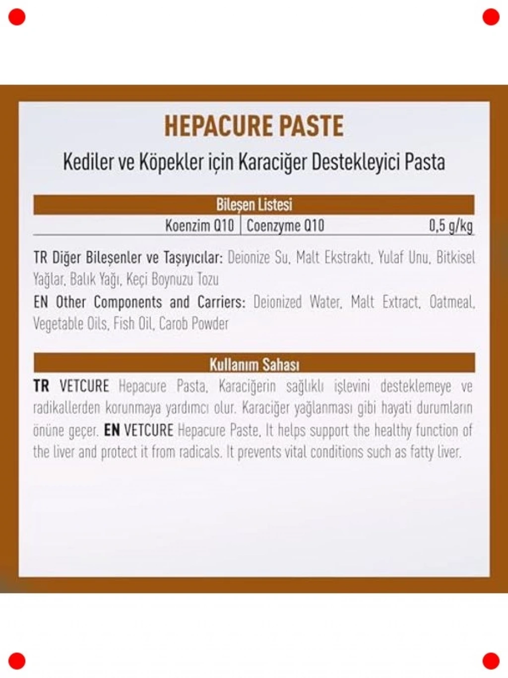 Kedi ve köpeklerin karaciğer sağlığını desteklemek amacıyla özel olarak formüle edilmiş bu macun, onların genel sağlığına önemli katkılar sunar. Karaciğerin detoksifikasyon fonksiyonlarını destekleyen ve hücre yenilenmesini teşvik eden doğal içerikler barındırır. Kolayca uygulanabilir macun formatı sayesinde evcil hayvanınıza vermek oldukça pratiktir. Veteriner hekimler tarafından önerilen bu destekleyici, karaciğer fonksiyon bozukluklarında veya iyileşme süreçlerinde etkili bir tamamlayıcıdır. İçeriğindeki vitaminler ve antioksidanlar, bağışıklık sistemini güçlendirir ve evcil dostunuzun enerjik ve zinde kalmasına yardımcı olur. 100 gramlık tüp formatındadır.