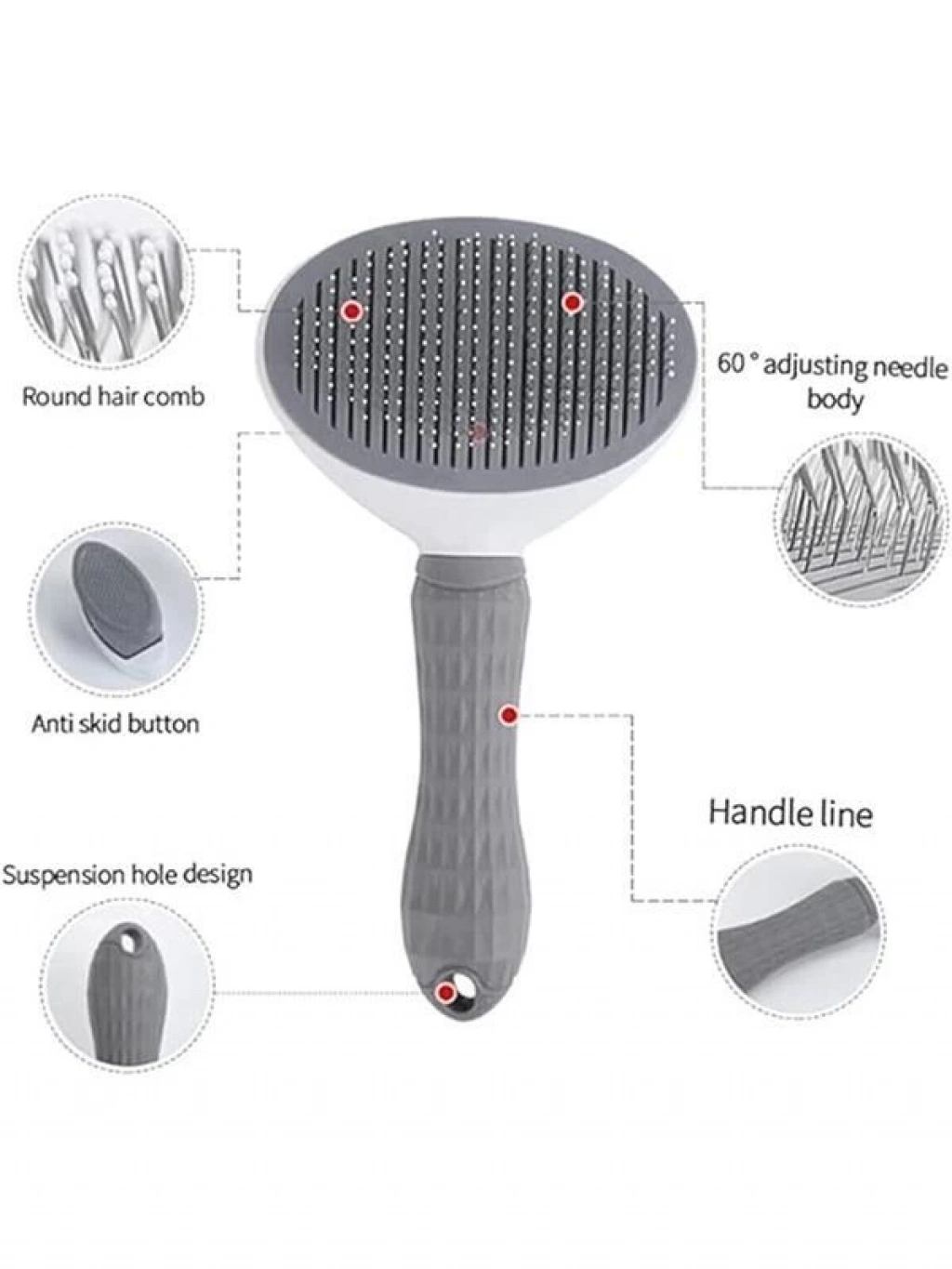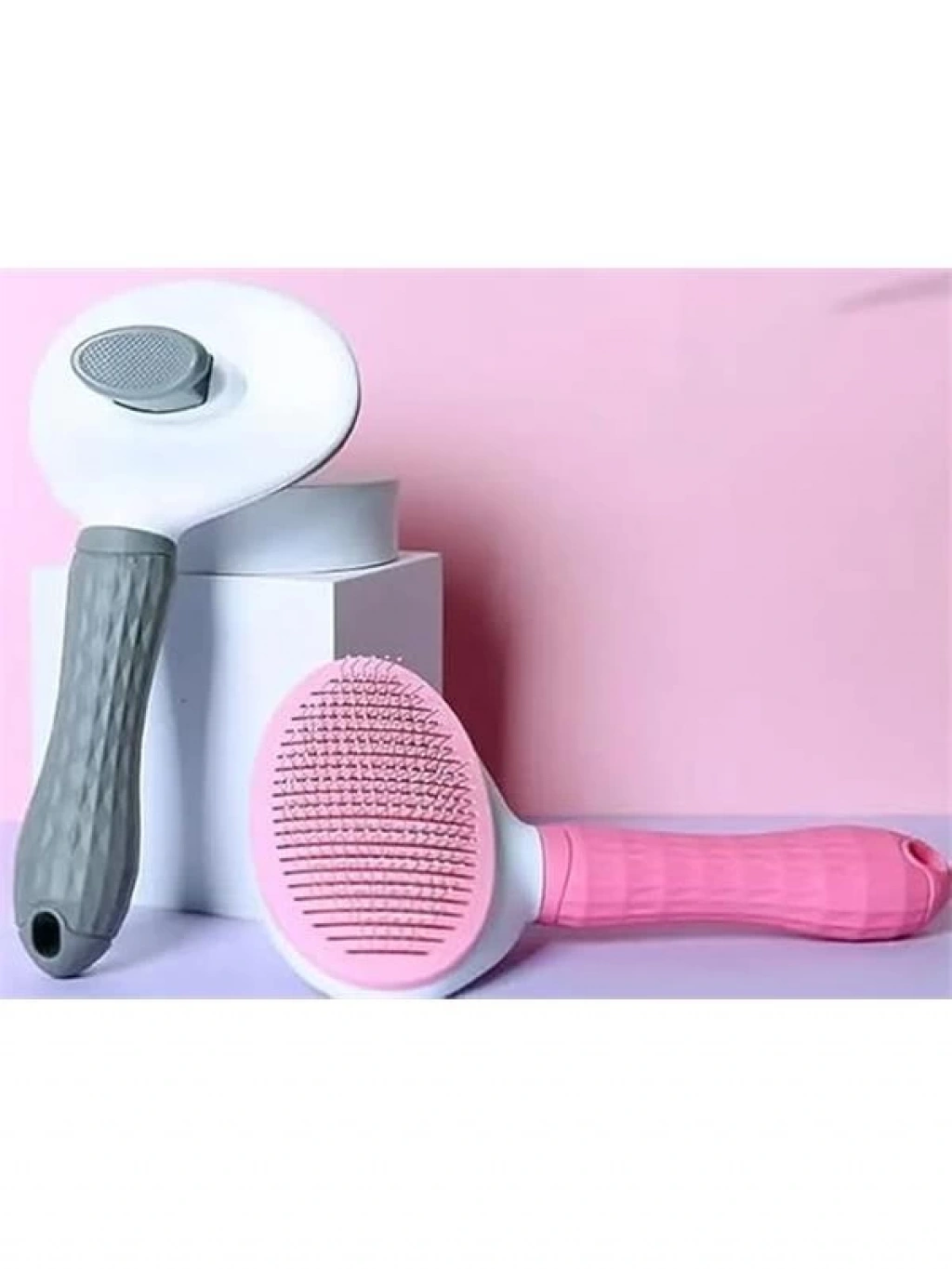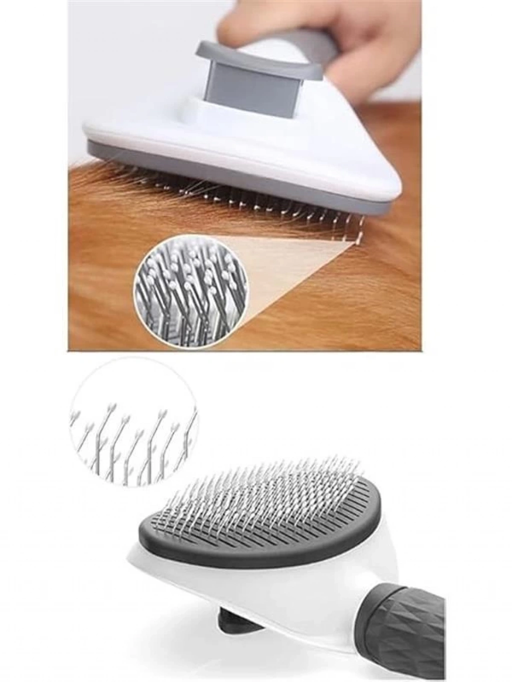Kedi Köpek Tarağı - Otomatik Temizlenen Düğmeli (gri)