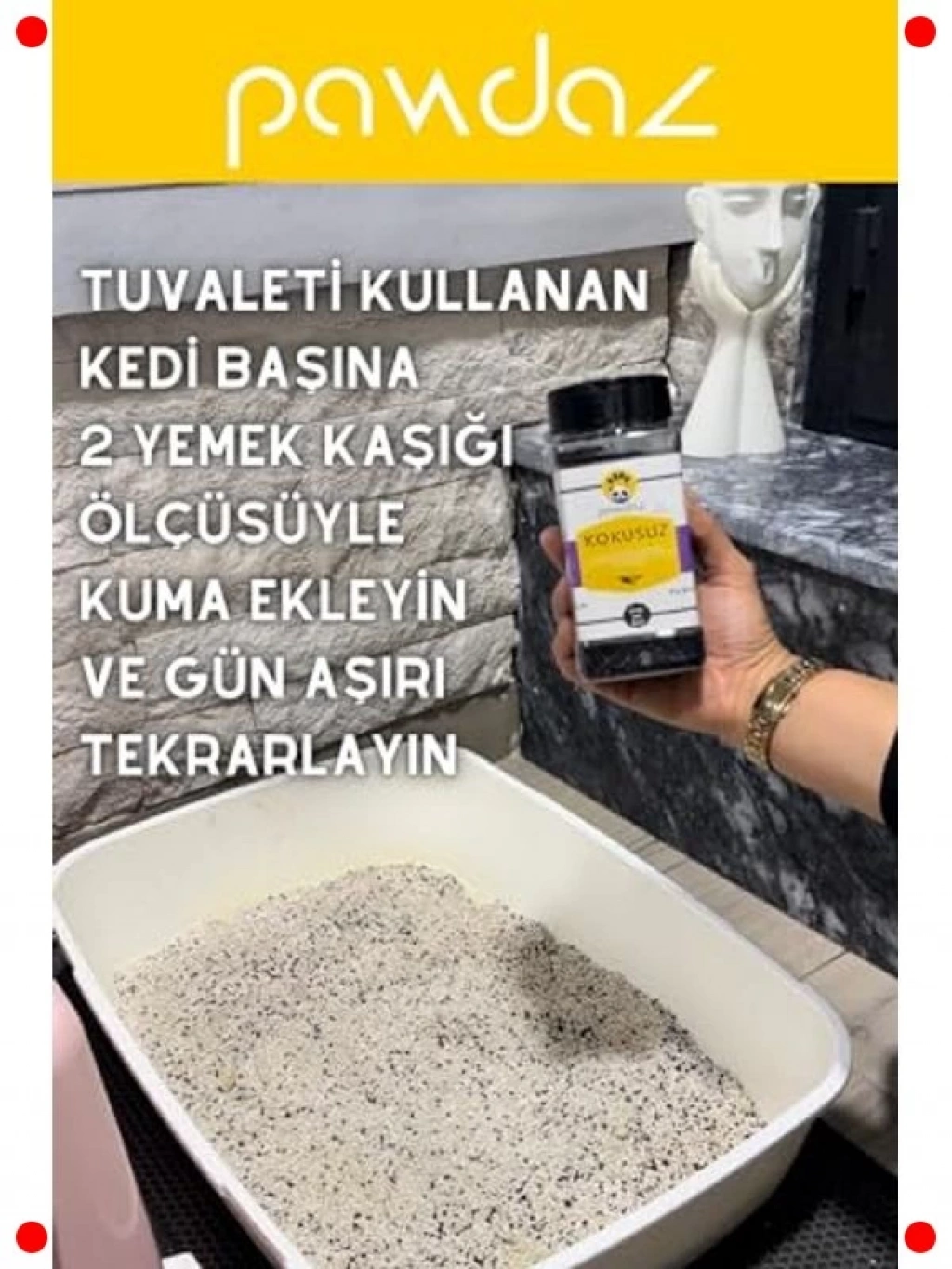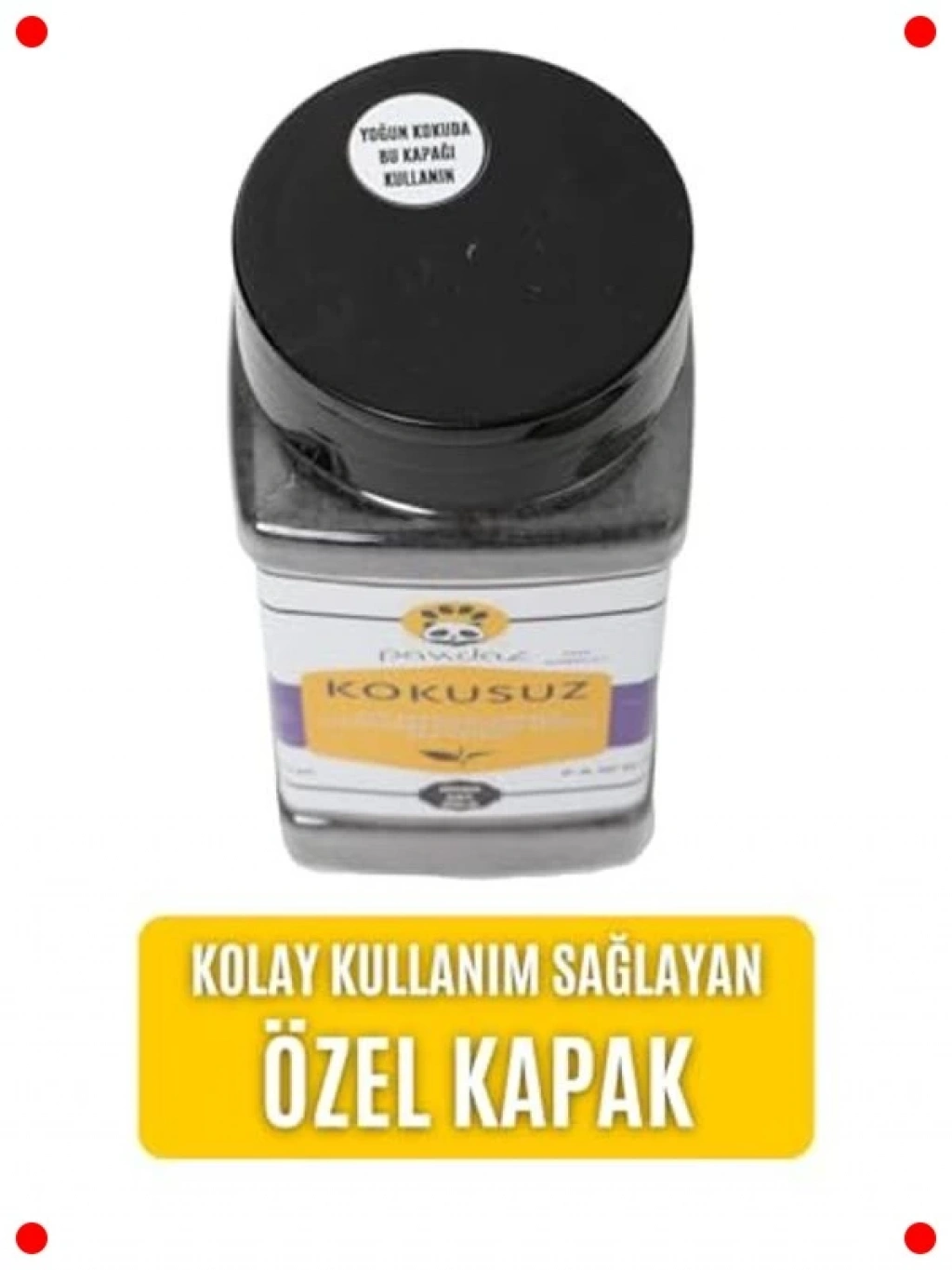 Kedi kumu kutunuzdaki istenmeyen kokuları etkili bir şekilde gidermek için özel olarak geliştirilmiş bu ürün, evinizde temiz ve ferah bir ortam yaratır. Aktif karbon ve siyah çay özlü özel formülü sayesinde, kokuları maskelemek yerine onları hapseder ve nötralize eder. Kokusuz yapısı, hem sizin hem de kediniz için rahat bir nefes alma imkanı sunar. Uzun süreli etki göstererek kumu daha uzun süre taze tutar. Kedi kumuna kolayca karıştırılarak kullanılır ve evcil hayvan dostu içeriği ile güvenle tercih edilebilir. Hijyenik bir yaşam alanı için vazgeçilmez bir yardımcıdır.