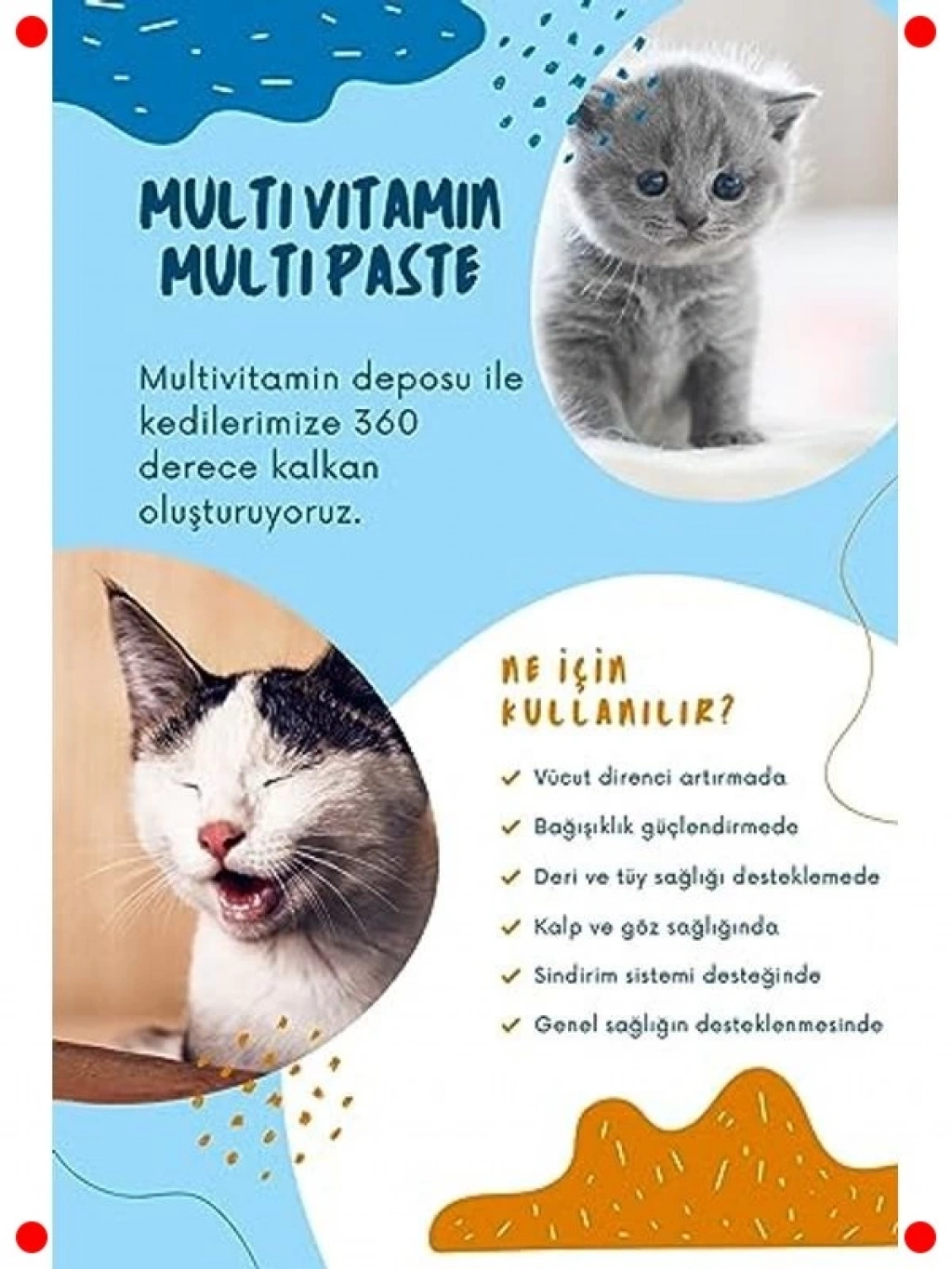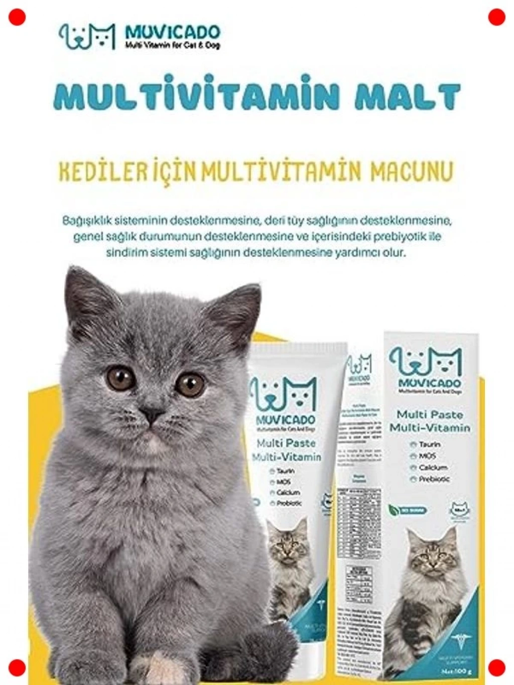 Kedinizin genel sağlığını desteklemek ve tüy yumağı oluşumunu en aza indirmek için özel olarak formüle edilmiş bu multivitamin malt macunu, lezzetli ve kullanımı kolay bir takviyedir. İçeriğindeki malt özleri, yutulan tüylerin sindirim sisteminden kolayca geçmesine yardımcı olarak tüy yumağı kusma problemlerini azaltır. Zengin vitamin ve mineral kompleksi, kedinizin bağışıklık sistemini güçlendirir, enerji seviyesini artırır ve cildinin sağlıklı, tüylerinin parlak olmasına katkıda bulunur. Her yaştan kedinin severek tüketeceği bu macun, günlük beslenmelerine değerli bir destek sağlar ve onların daha sağlıklı ve mutlu bir yaşam sürmesine yardımcı olur.