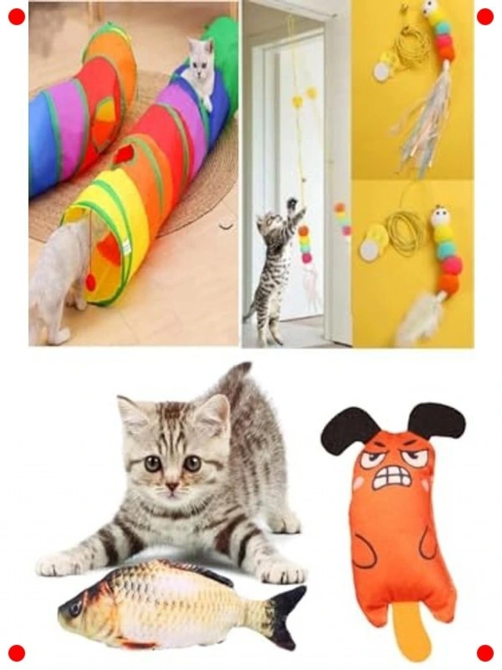 Kedinizin içgüdüsel avcılık yeteneklerini harekete geçirecek ve ona saatlerce eğlence sunacak bu kapsamlı oyun seti, birden fazla oyuncağı bir araya getiriyor. Esnek ve kıvrılabilir kedi tüneli, kedinizin saklanma ve keşif yapma dürtüsünü tatmin eder. Elastik olta, etkileşimli oyunlar için harika bir araçken, peluş balık ve peluş fare oyuncakları kedinizin pençeleme ve yakalama içgüdülerini harekete geçirir. Bu set, kedinizin hem fiziksel hem de zihinsel olarak aktif kalmasını sağlar, can sıkıntısını giderir ve evdeki mobilyalara olan ilgisini azaltır.