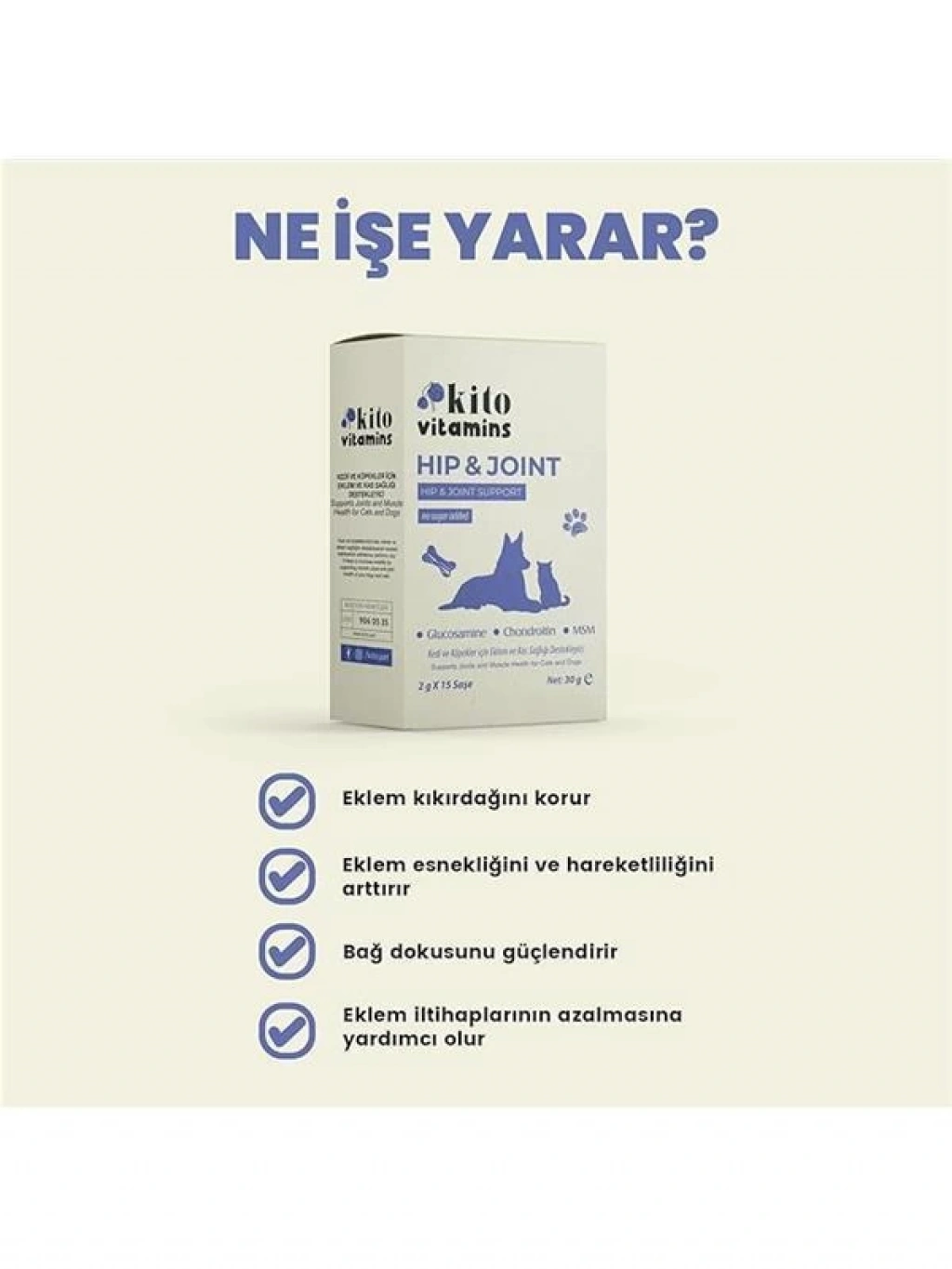 Bu ürün hakkında Vitamins Eklem ve Kas Sağlığı Destekleyici içerdiği Glukozamin Kondroitin ve MSM sayesinde kedi ve köpeğinizin Eklem kıkırdağını korur Eklem esnekliğini ve hareketliliğini arttırır Bağ dokusunu güçlendirir Eklem iltihaplarının azalmasına yardımcı olur