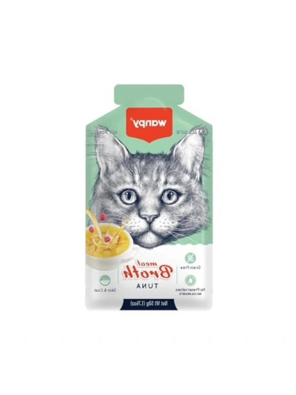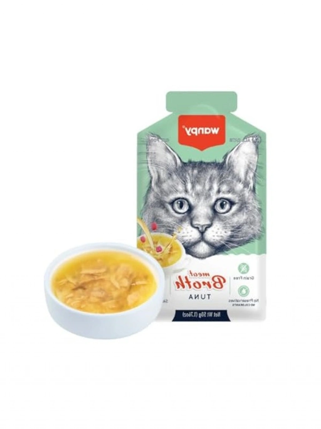 50g'lık ton balığı eti çorbası, tahılsız bir formüle sahiptir ve renklendirici veya koruyucu içermez. Kedinizin sağlıklı bir şekilde beslenmesine katkı sağlayacak doğal bir ödül sunar.
