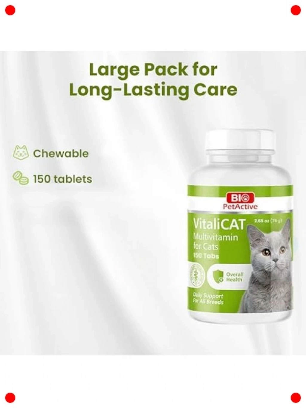 Kedinizin genel sağlığını ve yaşam kalitesini artırmak için özel olarak formüle edilmiş bu multivitamin takviyesi, 150 tabletlik ekonomik bir ambalajda sunulur. Kedinizin günlük vitamin ve mineral ihtiyaçlarını karşılayarak bağışıklık sistemini güçlendirir, enerji seviyelerini yükseltir ve vitalitesini artırır. İçeriğindeki zengin vitaminler (A, D, E, B grubu) ve mineraller (çinko, selenyum) sayesinde deri ve tüy sağlığını iyileştirir, parlak bir tüy yapısı ve sağlıklı bir cilt görünümü sağlar. Kolayca mamalarına karıştırılarak veya direkt olarak verilebilen lezzetli tabletler, kedinizin sağlıklı ve mutlu bir yaşam sürmesine destek olur. Her yaştan kedi için uygundur.