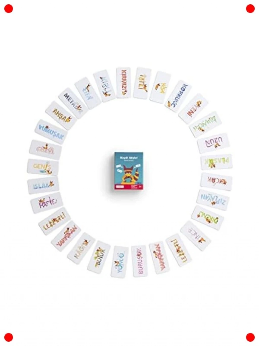 Hızlı düşünme ve kelime dağarcığını geliştirme becerilerini test eden bu eğlenceli kart oyunu, aile ve arkadaş toplantılarının vazgeçilmezi olacak! Oyuncuların belirli kategorilerde veya harflerle başlayan kelimeleri en hızlı şekilde bulmaya çalıştığı bu oyun, her turda yeni bir heyecan ve kahkaha dalgası yaratır. Kolay öğrenilen kuralları sayesinde her yaştan oyuncu tarafından keyifle oynanabilir. Dikkat, odaklanma ve hızlı reaksiyon becerilerini geliştiren bu oyun, aynı zamanda kelime bilgisini zenginleştirerek eğitici bir yön de sunar. Her yerde oynayabileceğiniz bu kompakt oyunla eğlenceyi yanınızda taşıyın!