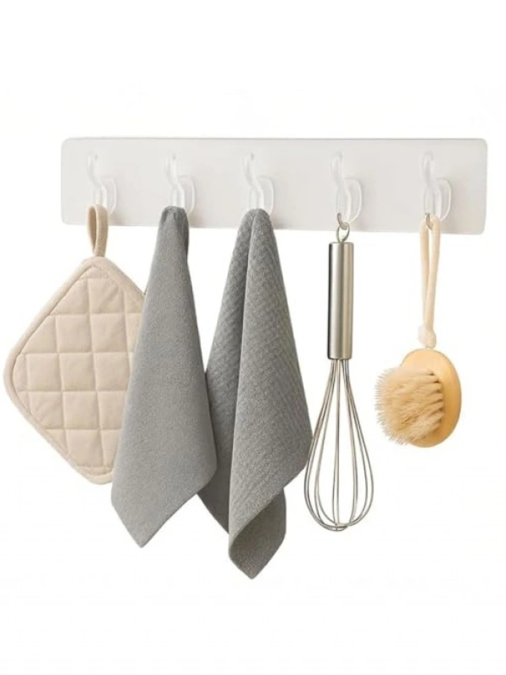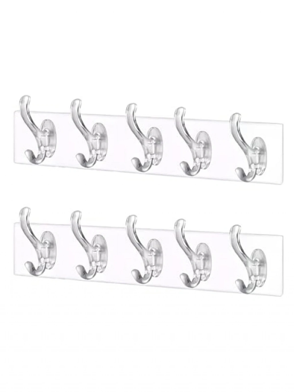Duvara delik açmadan montaj yapabileceğiniz bu kendinden yapışkanlı askı seti, toplamda 10 kanca ile geniş depolama imkanı sunar. Şeffaf ve minimalist tasarımı, her türlü dekorasyona uyum sağlar. Mutfak, banyo ve kapı arkası gibi alanlarda kullanıma uygundur. Suya ve neme dayanıklı yapısıyla yüksek taşıma kapasitesine sahiptir. Kolayca çıkarılabilir ve yüzeyde kalıntı bırakmaz.