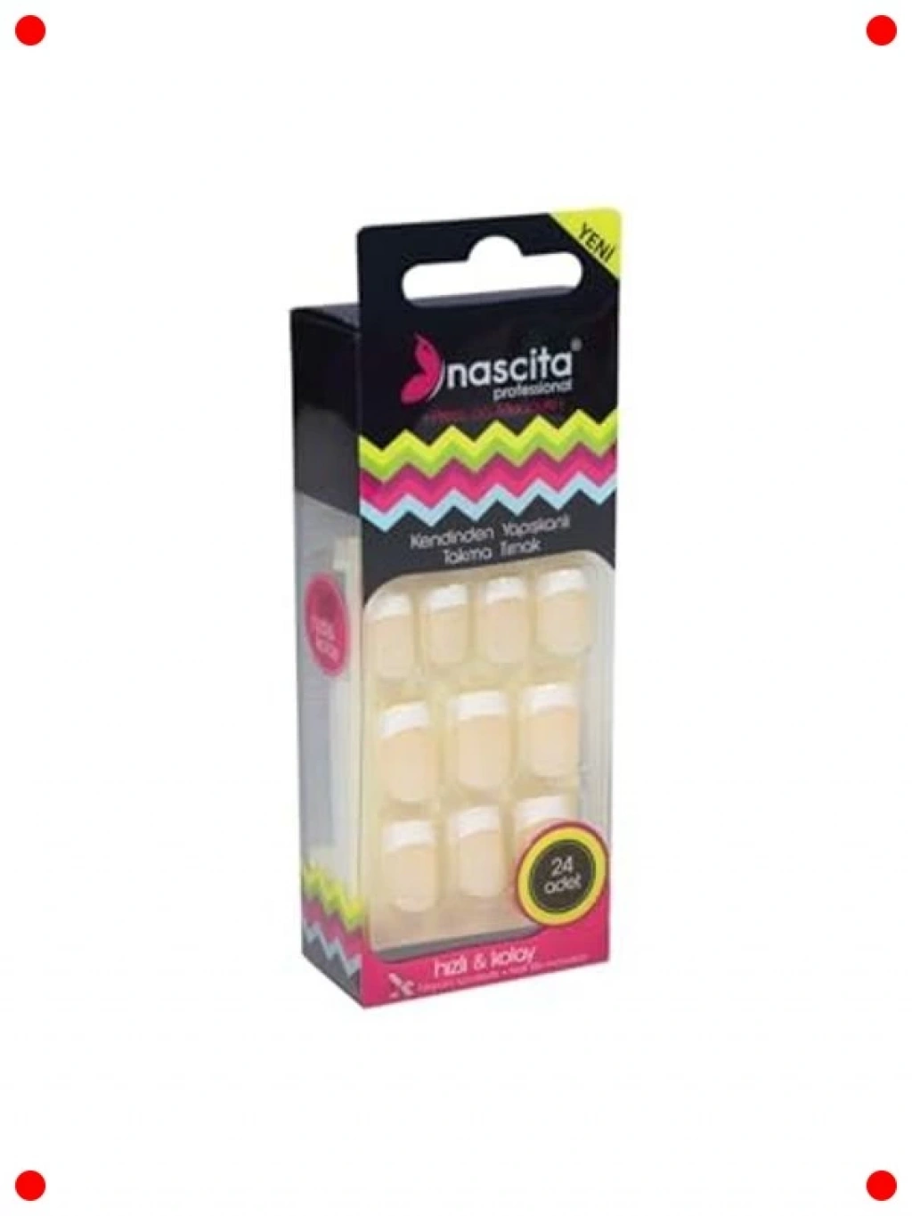 Hızlı ve pratik bir şekilde salon kalitesinde French manikür görünümü elde etmek isteyenler için tasarlanmış kendinden yapışkanlı takma tırnaklar. Mat bitişli ve şık French tasarımıyla tırnaklarınıza anında zarif bir hava katar. Özel yapışkanları sayesinde ek bir tırnak yapıştırıcısına ihtiyaç duymadan kolayca uygulanır ve uzun süre tırnaklarınızda kalıcılığını korur. Farklı boyutlarda 24 adet tırnak içerir, böylece tırnaklarınıza en uygun olanı seçebilirsiniz. Özel günlerinizde veya günlük kullanımda anında şıklık yaratın.